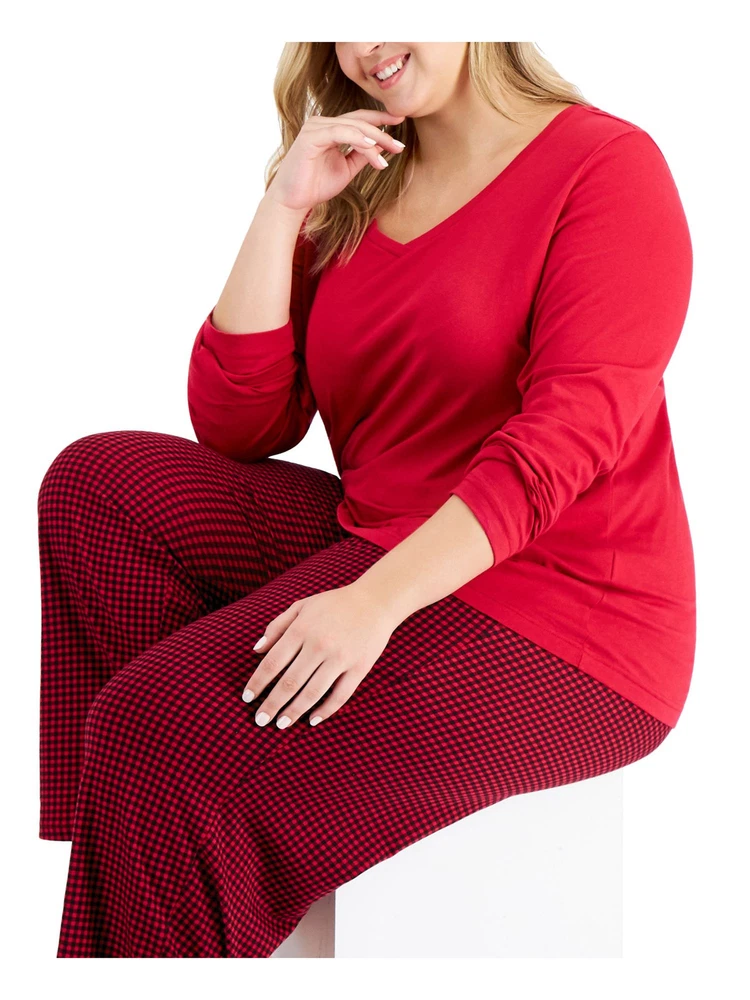 CHARTER CLUB Intimates Red Straight Leg Plaid Sleep Pants Plus 1X