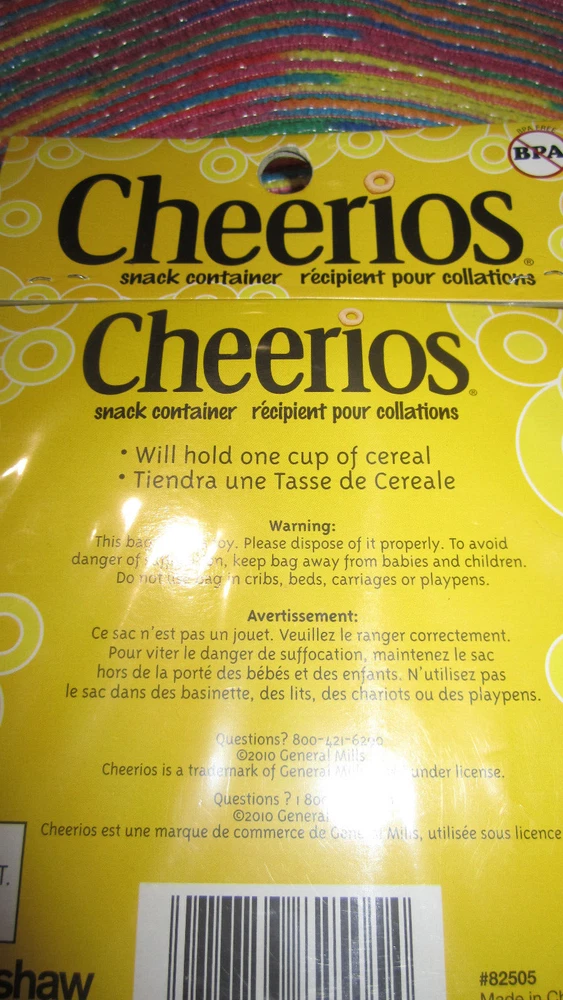 GREAT STOCKING STUFFER :-) Brand new! Adorable and timeless, fun for babies, toddlers,teens, and adults! This classic Cheerios container is perfect for toting snacks in the car seat, diaper bag, backpack, or briefcase, speedy shipping to your doorstep.
