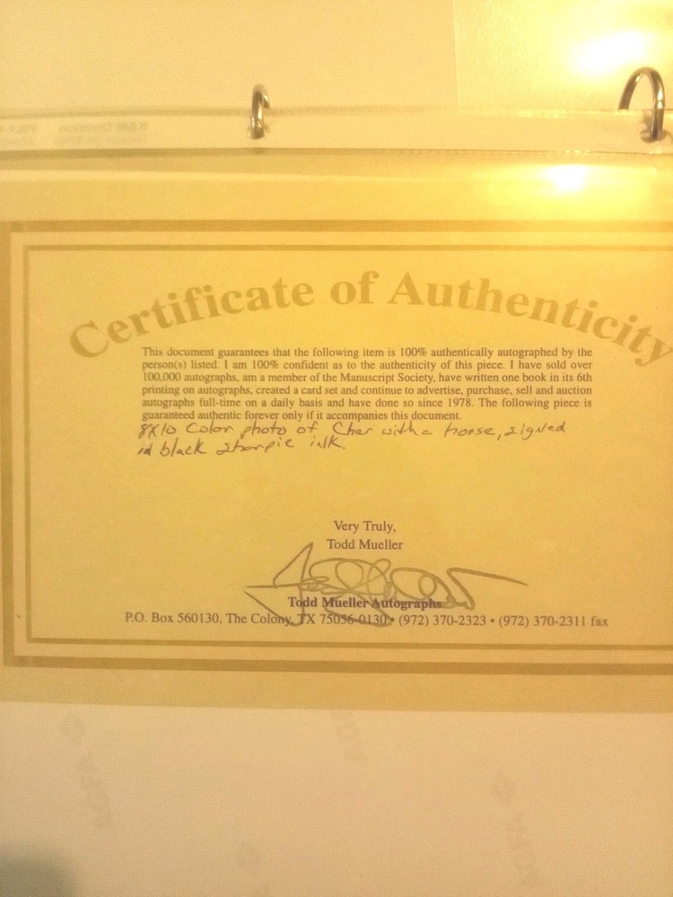 The product is an 8x10 photograph signed by the iconic singer and actress CHER. The autograph has been authenticated by ACOA and includes a Certificate of Authenticity. This original piece of entertainment memorabilia is a must-have for any fan of CHER and would make a great addition to any movie memorabilia collection.