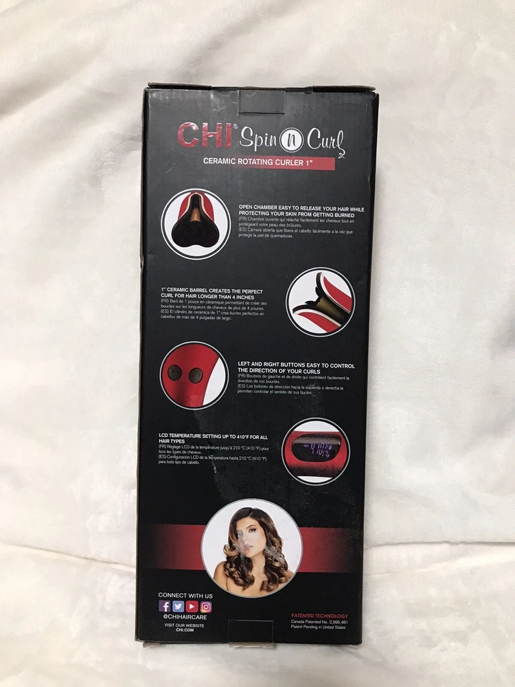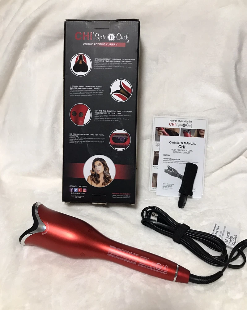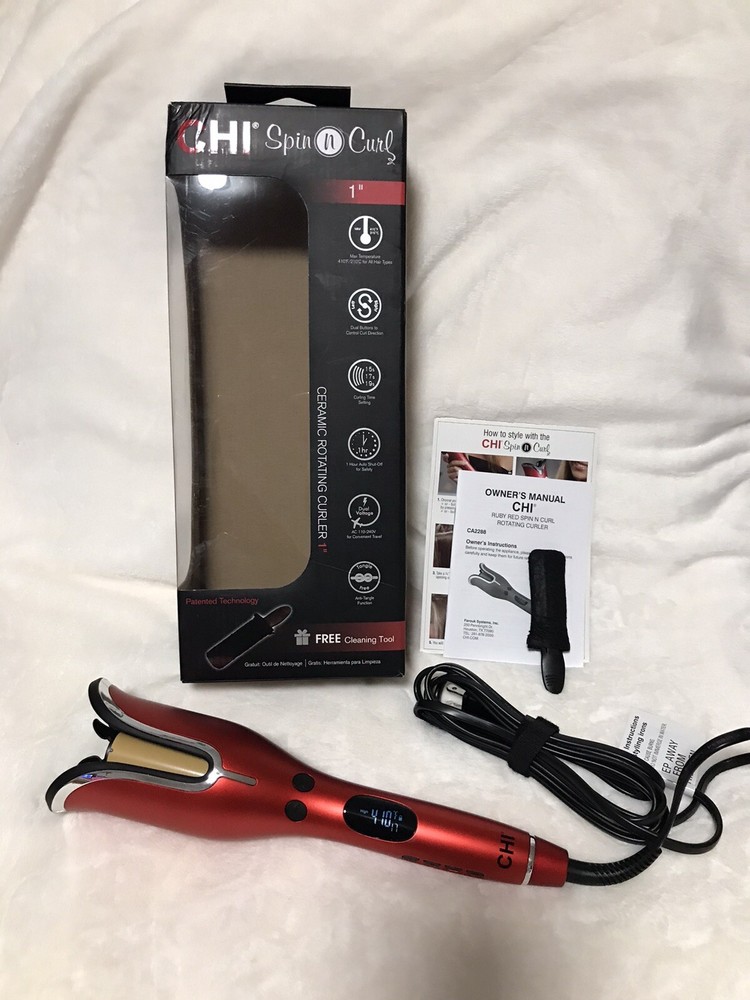 CHI Spin N Curl 1” Ceramic Rotating Hair Curler Ruby Red. Used, tested still in good condition. Item : B22(02)