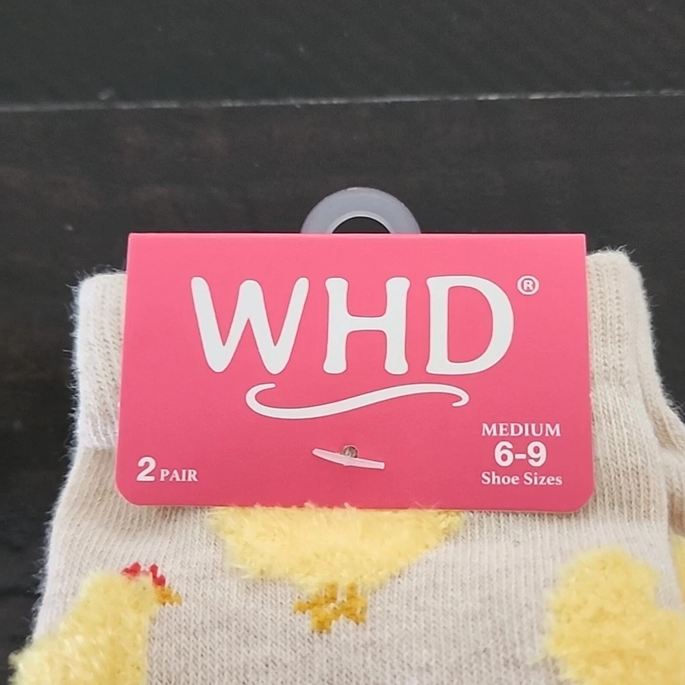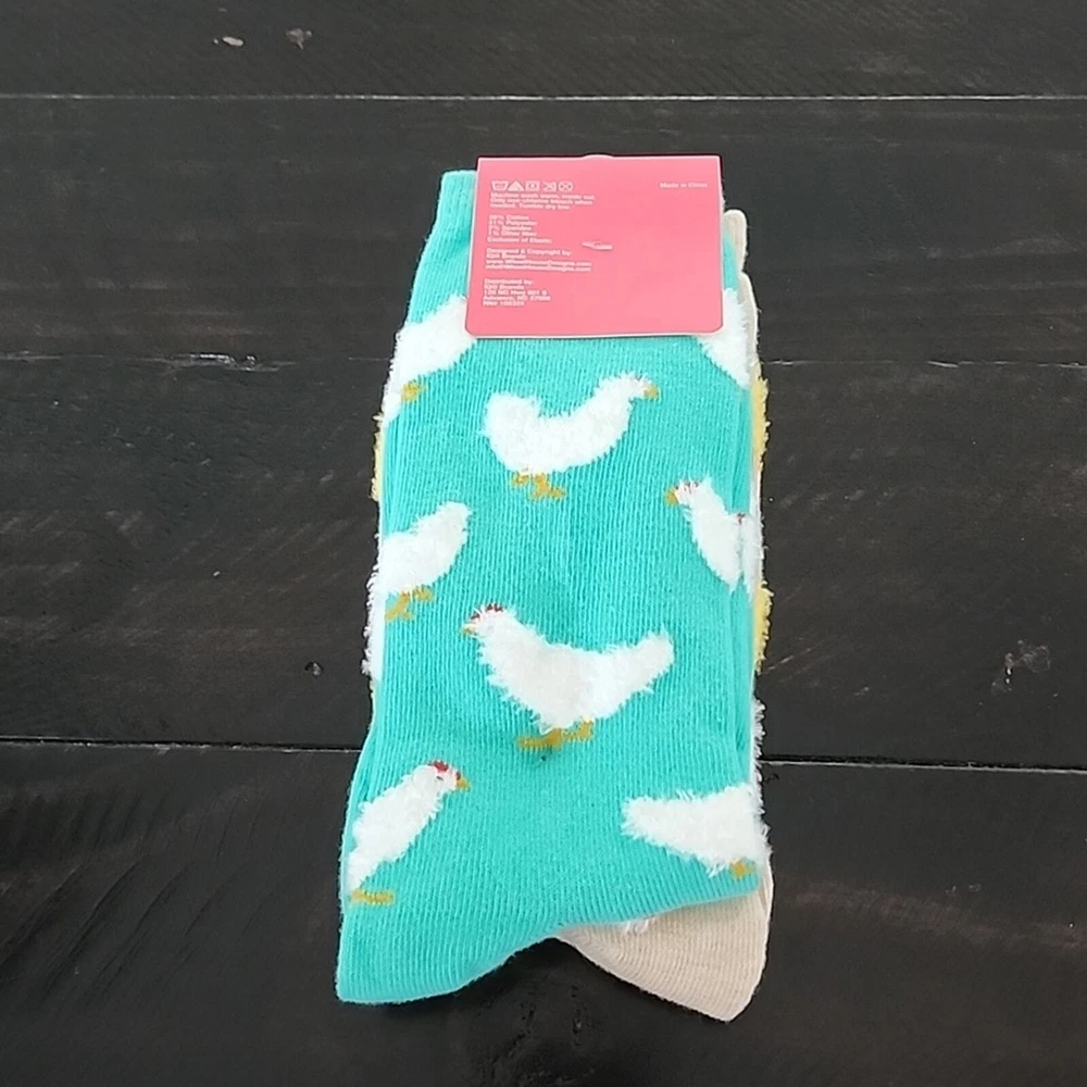 ✔ PLEASE NOTE: Measurements are approximate and sizing varies by brand, style, etc. Please read description before purchasing. NEW WITH TAG WHD fuzzy chicken socks. Set of 2 pairs. Novelty socks. Socks. Novelty. Chickens. Feet. Warm. Fuzzy. Cozy. Art. Nature. Farm animals. Size: Women's Medium, Shoe size 6 - 9 Color: Aqua & tan Material: 56% cotton, 41% polyester, 2% spandex & 1% other fiber Condition: NEW WITH TAG ✔ NEXT DAY SHIPPING ✔ NON-SMOKING ✔ NO TRADING 0320 - 4 / 0 / 5 oz