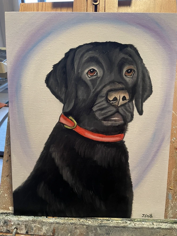 PRICE DROPPED $10!! This stunning piece of artwork is a one-of-a-kind oil painting on canvas, signed by artist J Smith. The painting features a beautiful black Labrador Retriever in a realistic yet abstract style. Measuring 14 inches in length and 11 inches in height, this medium-sized painting is perfect for any art enthusiast or dog lover. The painting was produced in the United States in 2024 and is an original piece, making it a unique addition to any collection. It comes unframed and is handmade with high-quality materials, showcasing the artist's skill and attention to detail. This painting is a must-have for anyone who appreciates art and the beauty of man's best friend.