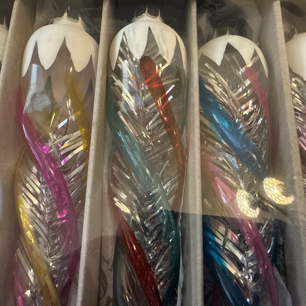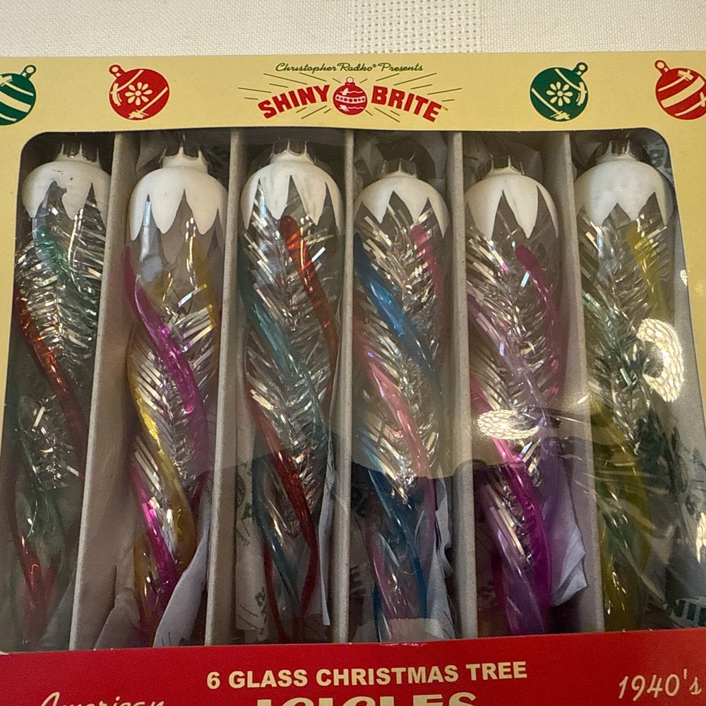 CHRISTOPHER RADKO SHINY BRITE BOX OF 6 ICICLES 6” CHRISTMAS ORNAMENTS W/tinsel