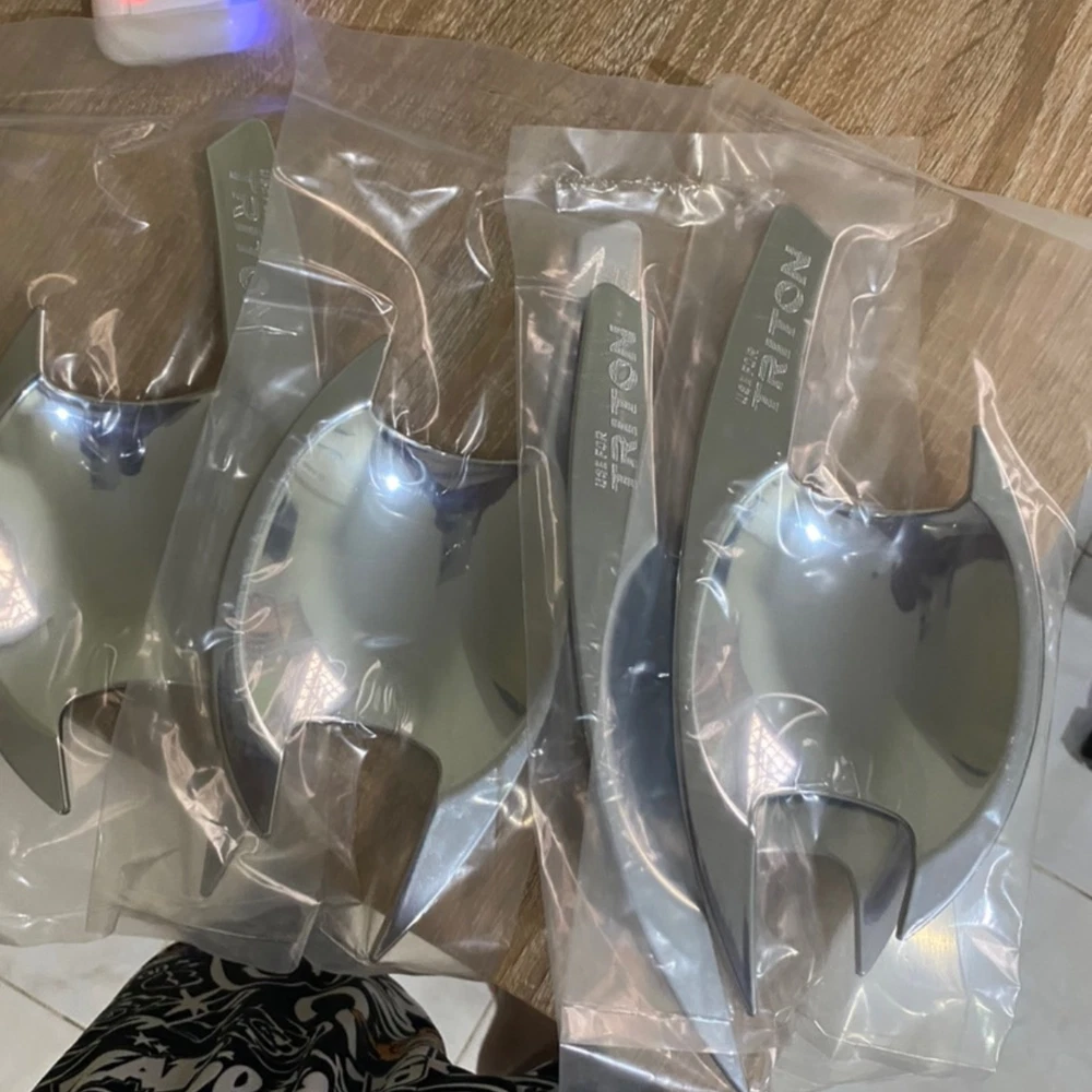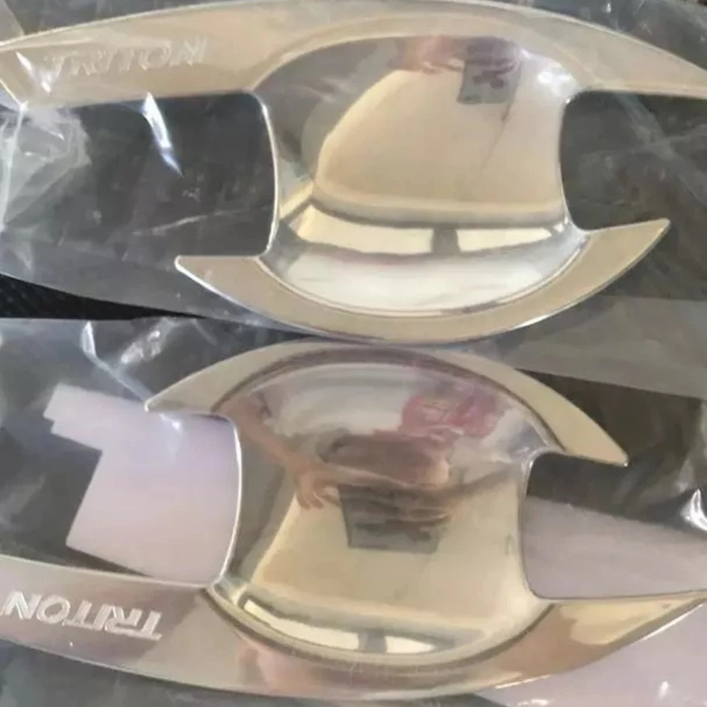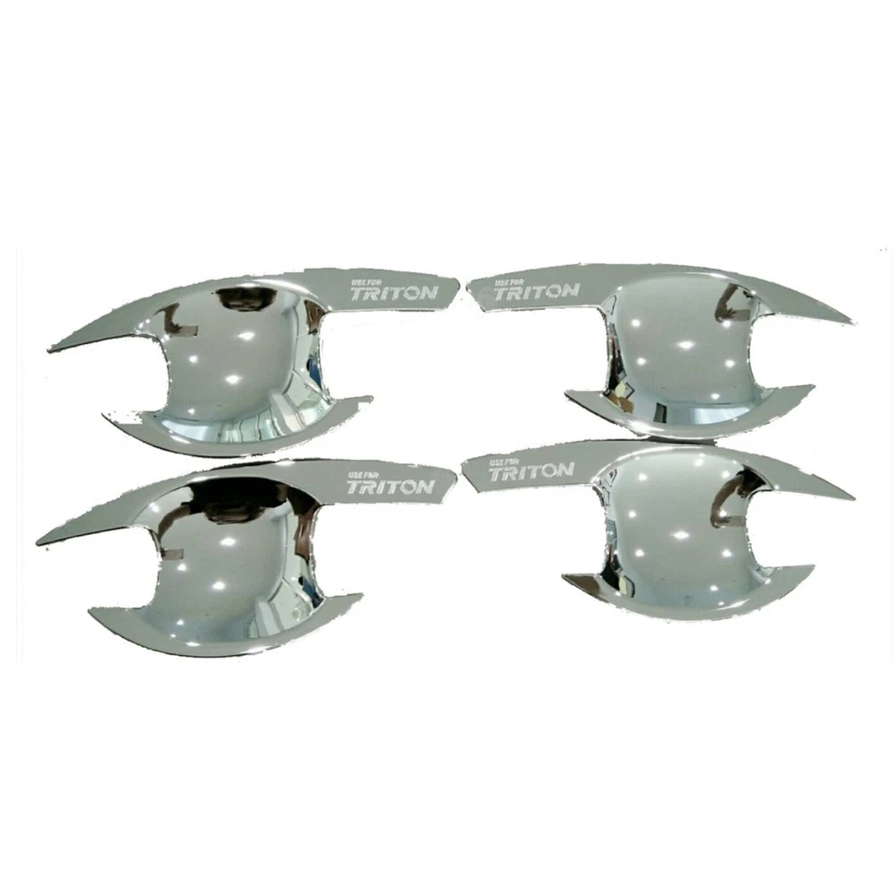 CHROME DOOR HANDLE COVER INSERT BOWL FOR MITSUBISHI TRITON L200 2005-14 ( 1 SET = 4 Pcs. ) Production Introduction : For: + Mitsubishi Triton L200 Pickup MN ML Year 2005-2014 + Made in Thailand + ABS Plastic + Easy Installation + Pre-attached ahesive tape + Chrome Surface Production Description : Name : Door Handle Cover Insert Bowl Trim Condition : New Type : Door Handle Insert Bowl Model Fit : Mitsubishi Triton L200 Pickup Year 2005-2014 (MN, ML) Quantity : 4 pcs Door Handle Cover Insert Bowl Trim To Set How to Use : -