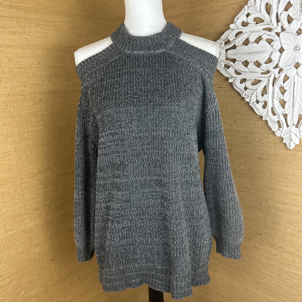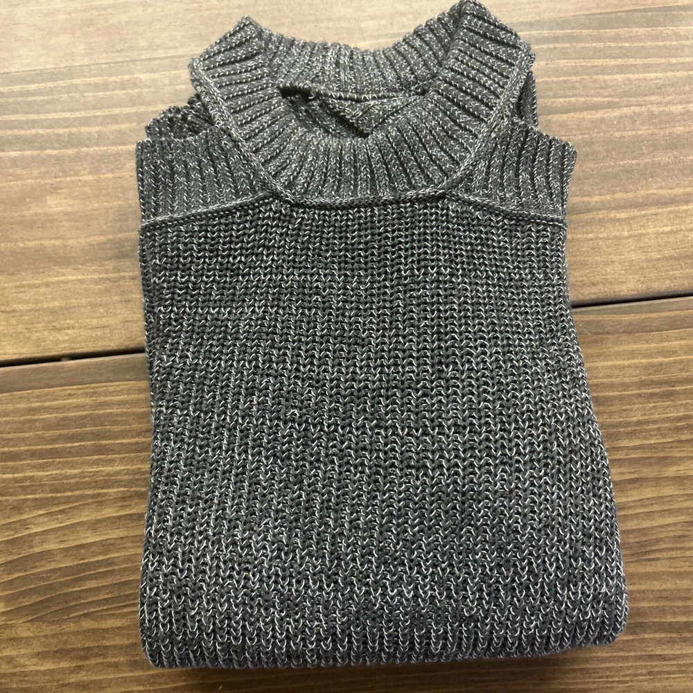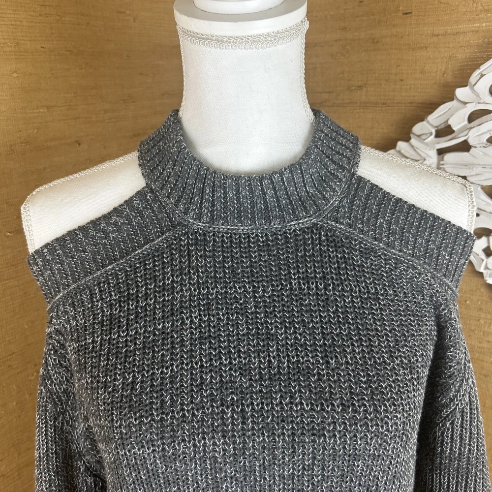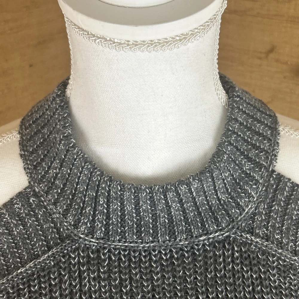 Preowned, gently worn. Medium weight chunky knit open shoulder sweater size small. This item has been laundered/washed per eBay policy and standards.