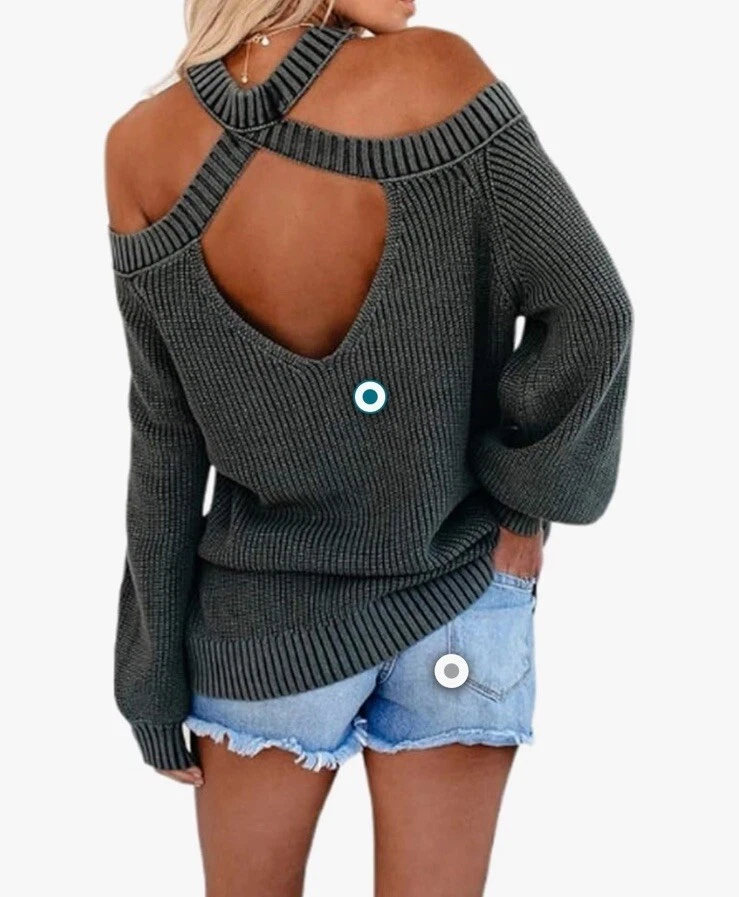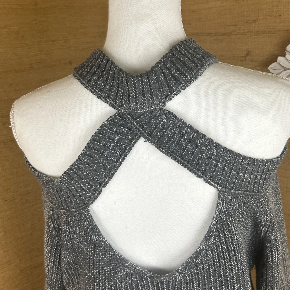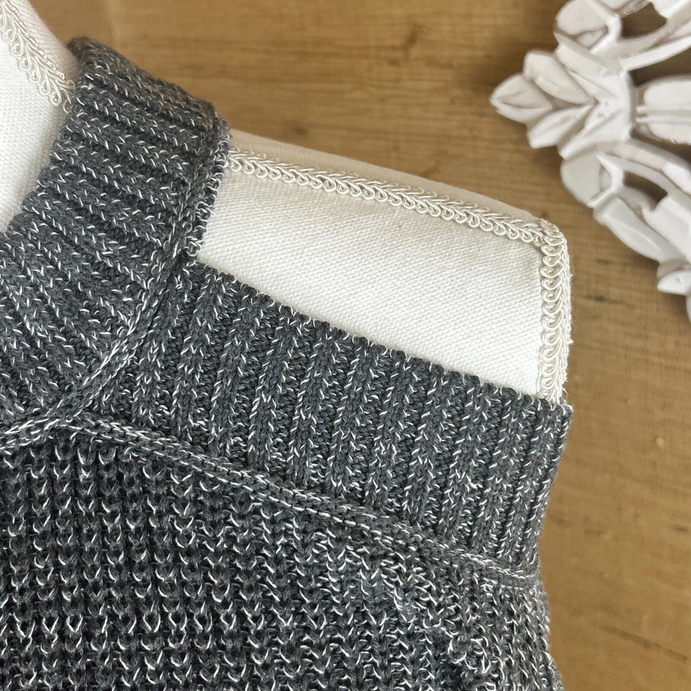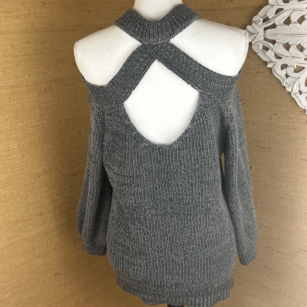 Preowned, gently worn. Medium weight chunky knit open shoulder sweater size small. This item has been laundered/washed per eBay policy and standards.