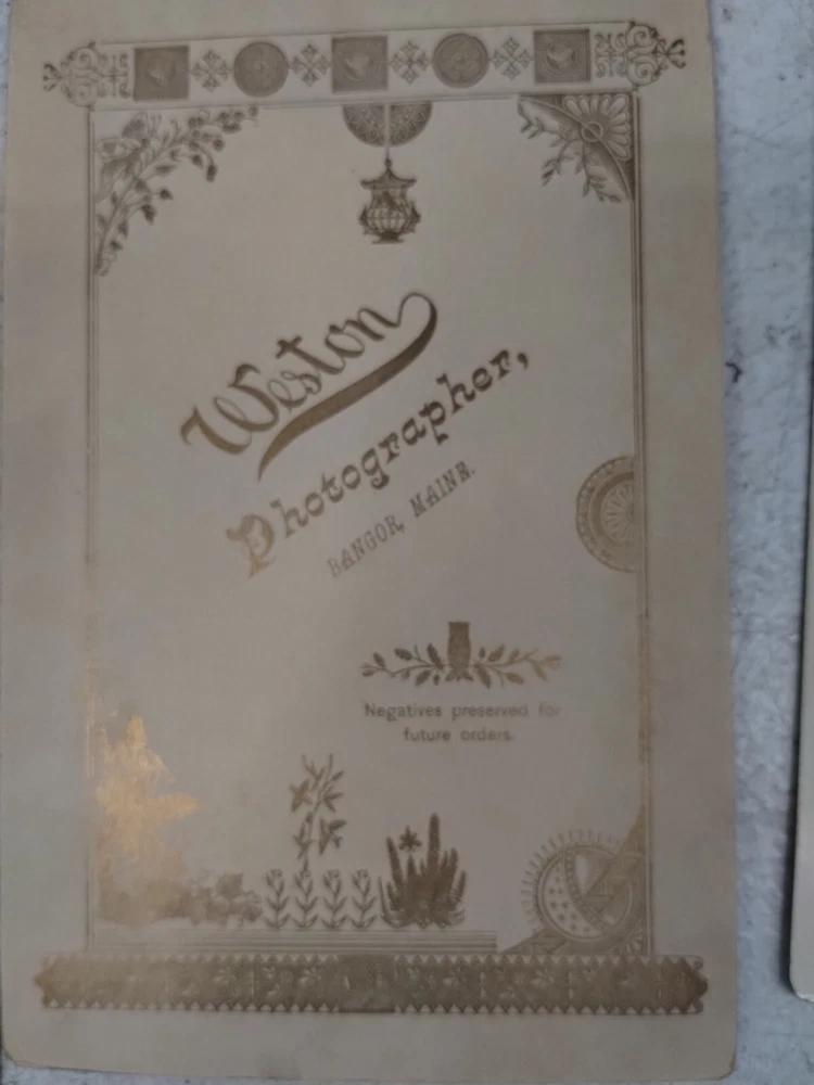 This is an antique Cabinet Cards photograph from the 1890s featuring a family group taken by multiple studios. The portrait is printed on glossy cardboard material in a portrait orientation. This original albumen print showcases men and family members in a vintage style typical of the late 19th century United States, making it a unique and historical piece of photographic memorabilia. Locations Crockett Rockland, Maine F J Derrick Jonesport, ME Sroddard. New Haven, Conn W v lane. Camden, Maine W C Tuttle & son Green's Landing ME W Shaw Warren. Boston, Mass Elmer Chickering. Boston, Mass The Royal Studio Weston photography. Bangor, Maine Taber. San Francisco, CA Levi Morse. Thomaston, Me