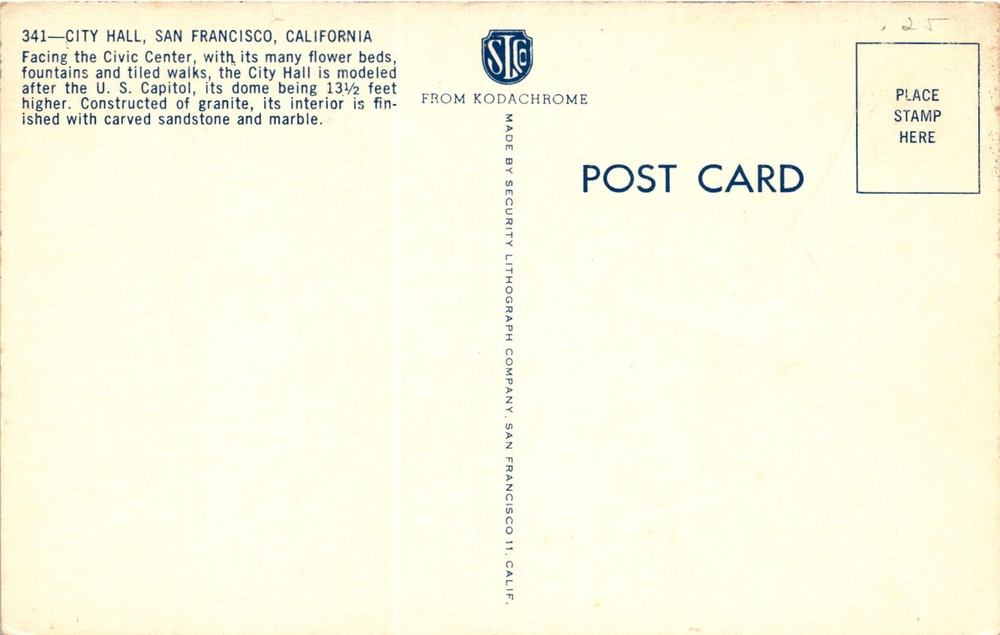 MAKE AN OFFER. THE MORE YOU BUY THE BETTER DEAL I WILL ACCEPT This postcard features a photo of City Hall in San Francisco, California. The City Hall is located in the Civic Center area of San Francisco and is modeled after the U.S. Capitol, with a dome that is even taller. The building is made of granite and features intricate interior details like carved sandstone and marble.
