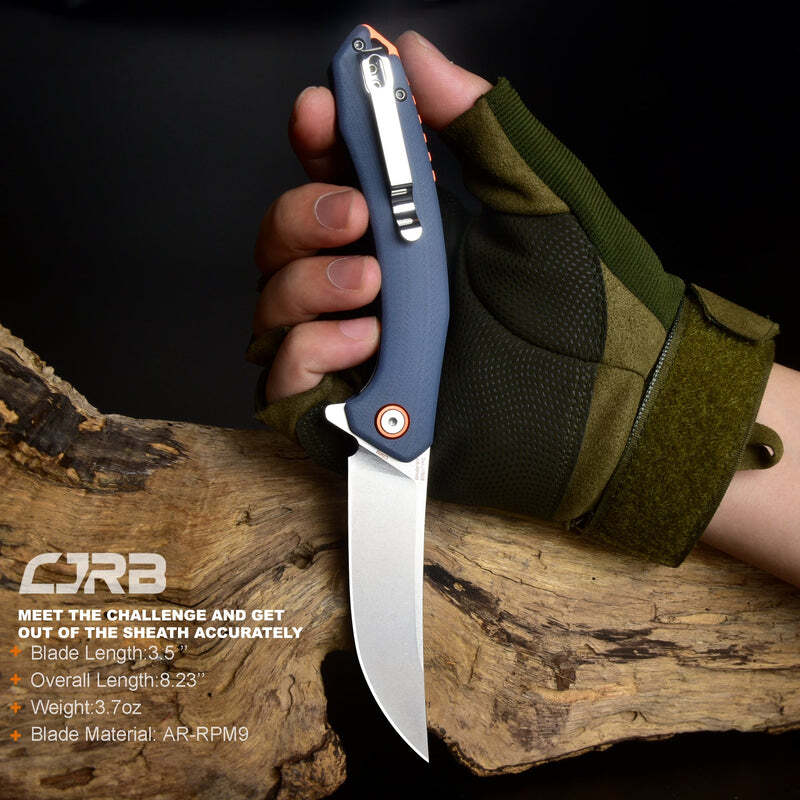 Folding Knife with Cjrb Gobi J1906 D2/AR-RPM9 Blade G10 Handle For all of your culinary needs, the Cjrb Gobi J1906 D2/AR-RPM9 Blade G10 Handle Folding Knife is a dependable and adaptable instrument. Important attributes: Stainless Steel Construction: This knife is made of premium stainless steel and is intended to last for many uses. Precision Cutting: This knife is an indispensable tool for a variety of culinary activities because it is ideal for precision cutting. Durability: This knife is perfect for camping, outdoor cooking, and other activities because it is made to resist regular use. Versatile Use: An essential tool for every kitchen, this knife may be used for a wide range of culinary tasks. The Cjrb Gobi J1906 D2/AR-RPM9 Blade G10 Handle Folding Knife is your go-to tool for accuracy and dependability whether you're cooking or going on outdoor excursions. The name of CRJB's folding pocket knife, the Gobi, comes from the immense desert that stretches across a large portion of the Chinese mainland. Traditional desert knives served as the model for this knife. Its trailing point blade and deep belly make it a great tool for precise cutting. The ergonomic curvature of the handle allows you to comfortably hold on for extended periods of time.Qualities: includes a 3.5-inch upswept-shaped stone-finished blade for accurate tasks like filleting fish or skinning small game. The blade is meticulously machined from D2 steel to help you maintain attention to detail, remarkable longevity, and corrosion resistance. The sharp blade is kept in position while in use by the straightforward liner lock mechanism, and opening and closing the blade is exceptionally smooth thanks to the ceramic ball bearing pivot assembly. The textured G10 handle makes it easier to hold, and the steel clip makes it easy to secure the knife to your pocket or belt. The knife measures 4.72 inches long when closed and 8.23 inches long when open.