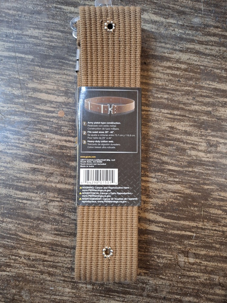 The CLC Custom Leathercraft C501 Heavy-duty Cotton Web Work Belt is a brand new tool belt designed for carrying your essential tools. Made of durable cotton web material, this adjustable belt in brown color is perfect for rough work environments. Crafted by CLC, this tool belt features a sleek design, adjustable fit, and is manufactured in India. The belt is compact and comes with one tool pouch, making it a convenient accessory for any home or workshop.