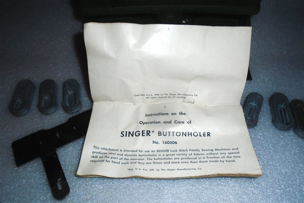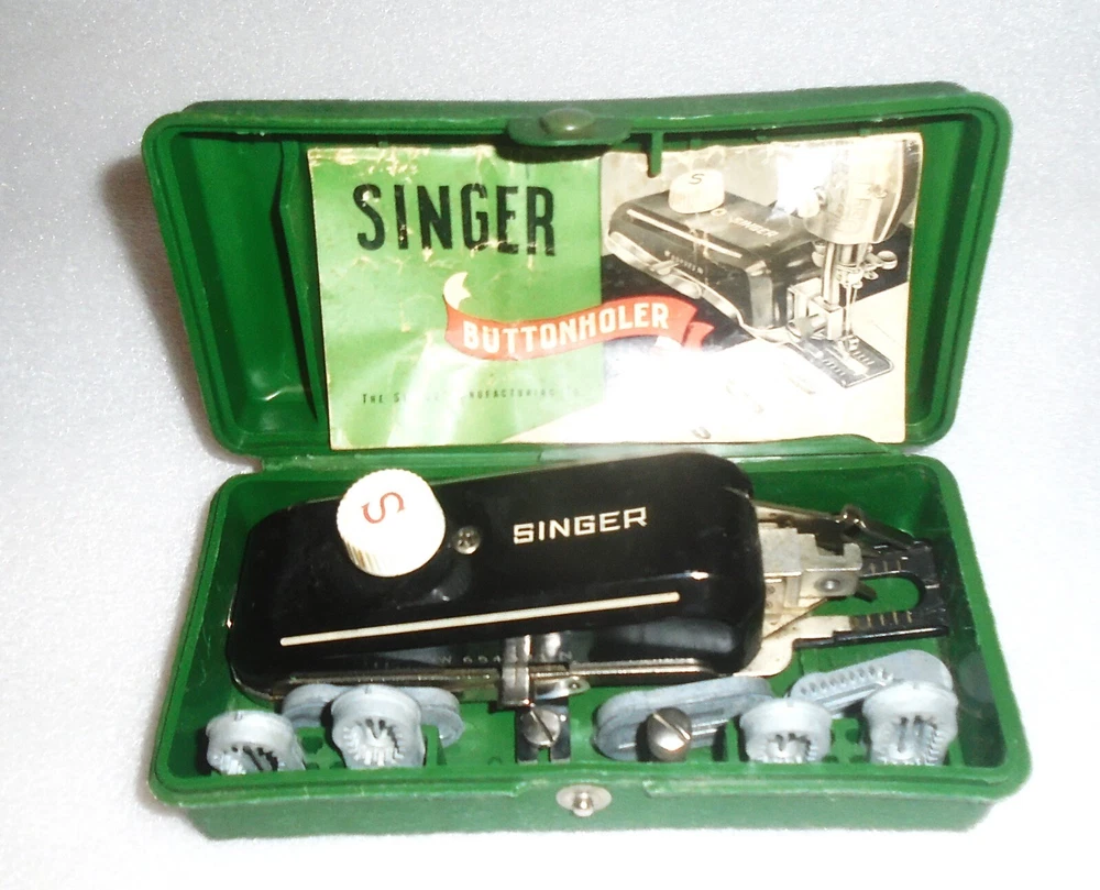 In excellent condition. The buttonholer comes with 7 templates and all you need to hook it up to your singer machine. There are also the original instructions. Final CLEARANCE SALE, PRICED TO SELL.