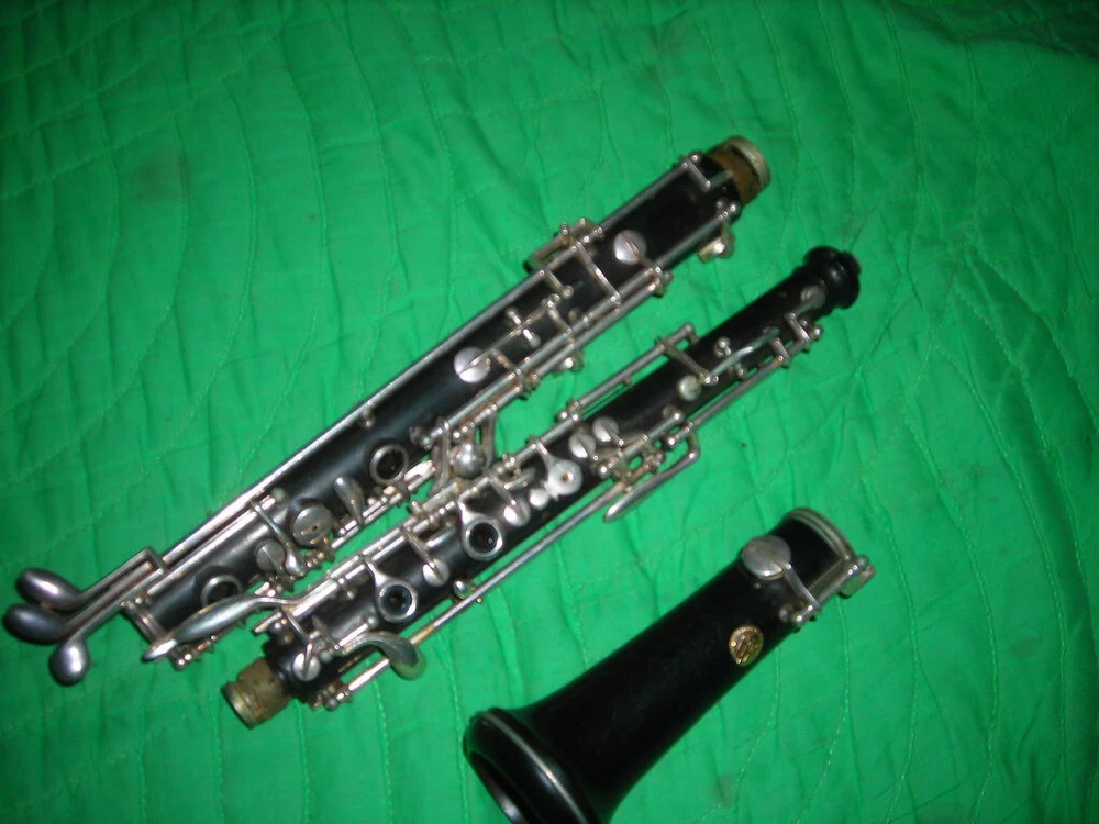 PLEASE READ EVERYTHING I DON'T KNOW A LOT ABOUT OBOE'S BUT DO MY BEST TO DESCRIBE AND PHOTOGRAPH THEM. THIS IS A VINTAGE 1960'S OR SO CONN WOOD OBOE. SERIAL NUMBER C280302L. IT IS AN ADVANCED BEGINNER TO INTERMEDIATE LEVEL OBOE AND HAS A SIMPLIFIED CONSERVATORY SYSTEM. THE GOLD SEAL HAS 3 MARCHING MEN AND SAYS CHOICE OF THE ARTISTS.IT IS IN GOOD CONDITION. ALL GRENADILLA WOOD. SILVER KEYS LOOK OK. PADS SEEM TO BE OK. THE CORKS NEED TO BE REPLACED. IT PROBABLY NEEDS SOME ADJUSTMENT OR TWEAKING AS IT HAS BEEN SITTING A WHILE. IT DOES PLAY. DO PLEASE REMEMBER IT IS A 60 YEAR OLD USED OBOE. S/H/I IS $25 EMAIL ME WITH ANY QUESTIONS THANKS