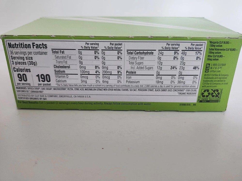 CLIF BLOKS - Salted Watermelon Flavor with 2X Sodium - Energy Chews - Non-GMO....