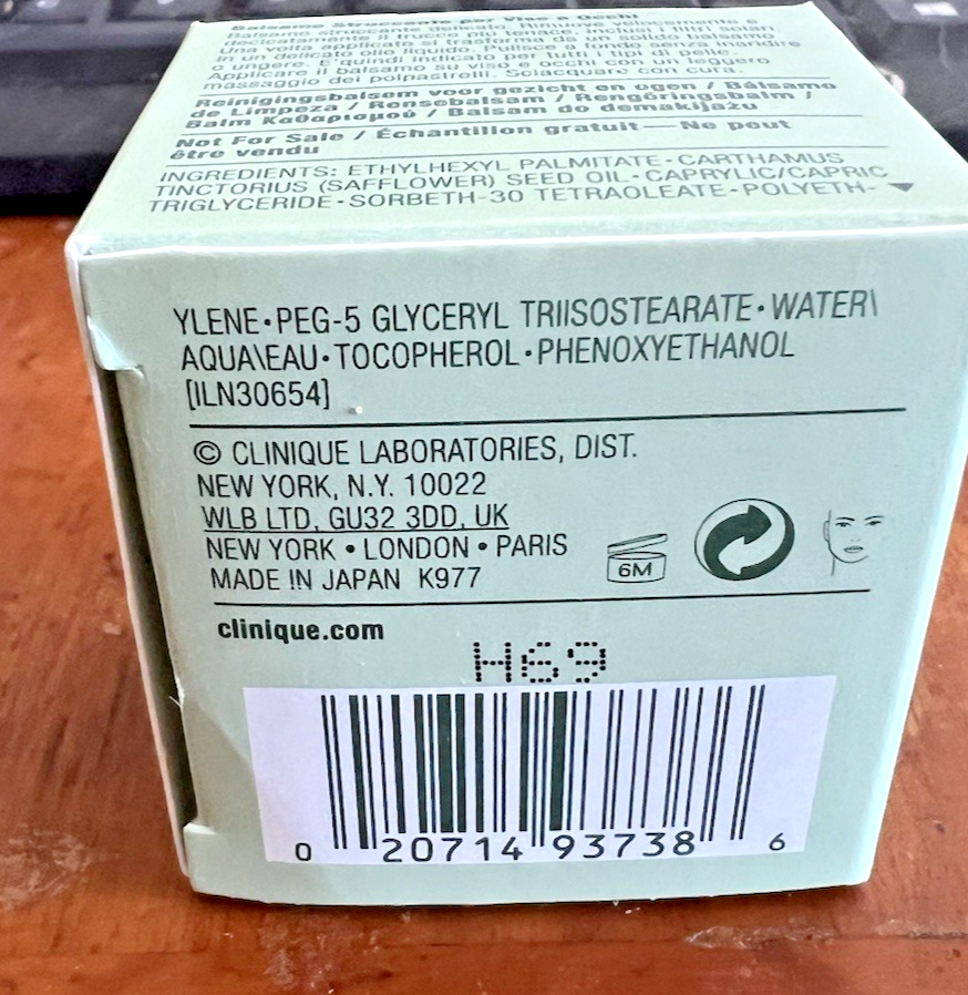 Features:HydratingUPC:Does not applyType:CleanserSize:Travel SizeProduct Line:Clinique Take the Day OffSkin Type:All Skin Typesgtin13:Does not applyBrand:CliniqueBody Area:FaceIngredients:GlycerinVolume:0.5 fl ozFormulation:Balm