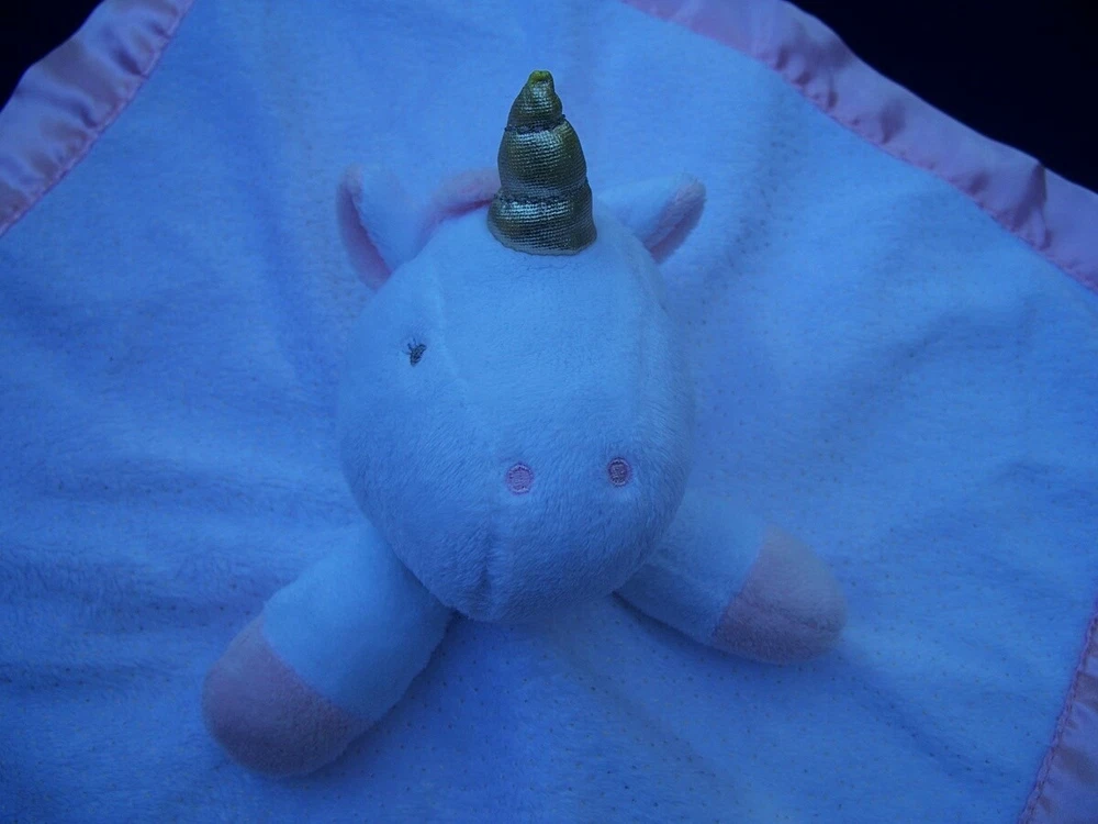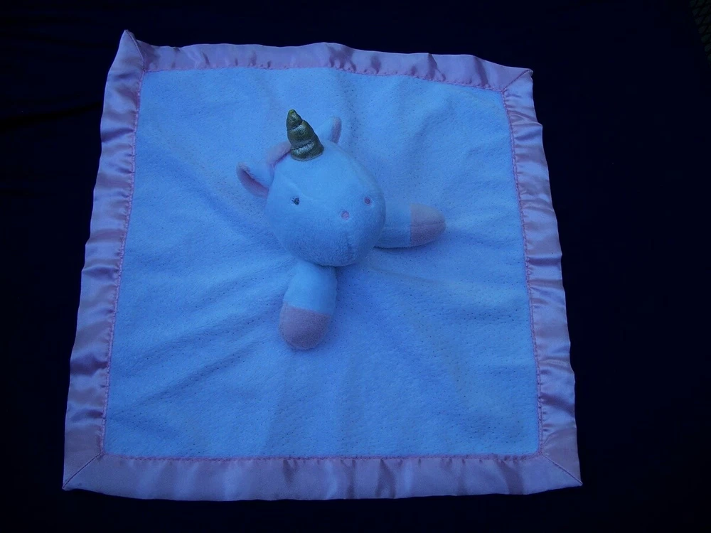 CLOUD ISLAND white & pink plush UNICORN lovey~security blanket~ CLOUD ISLAND white & pink plush UNICORN lovey~security blanket~ CLOUD ISLAND lovey/security blanket *Blanket Size: approx. 13.5 inches by 13.5 inches *Color: white, pink, and metallic gold *Plush fabric on one side and pink satin on the reverse *Fabric content: 100% polyester *Condition: great, pre-owned lovey; freshly laundered; no stains *We have a smoke-free home. Listing and template services provided by inkFrog