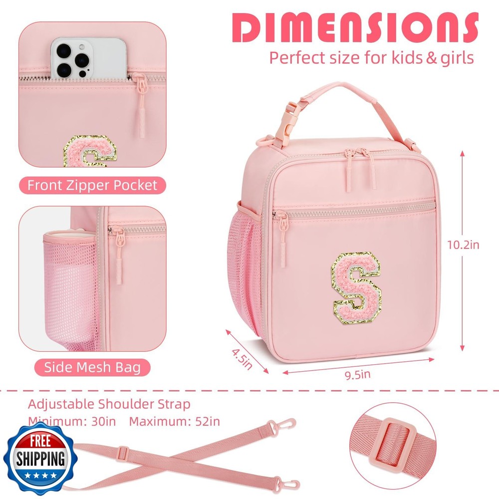 CLOUDWINGS Initial Insulated Lunch Bag for Girls Kids, Back to School Gift, Reusable Leak-proof Lunch Box with Adjustable Strap for School Daycare Travel Picnic (Pink,S) Features Personalized Letter Patch Design:The reusable lunch box for girls features a prominent initial, presenting a trendy and simple design. Crafted for lasting durability and a soft-touch finish. Perfect for kids, teens, and adults seeking a unique style statement 3 Ways to Carry:Hand-carry using the top handle, wear as a shoulder bag/crossbody with the adjustable strap, or attach to kids' backpacks via the detachable buckle handle Insulated & Easy-Clean:Triple-layer insulation (360d oxford fabric+Pearl cotton+PEVA lining) keeps meals cold/warm for 6+ hours. The waterproof, leak-proof lining wipes clean instantly—no lingering stains from spills or sauces. Built to last and easy to maintain Lightweight & Spacious:At just 0.44lbs, this 10.2"x9.2"x4.5" bag fits lunches, snacks, fruits, drinks, plus keys, phones, and small essentials. Ideal for school, office, picnics, travel, or beach days Ideal Gift:The stylish personalized monogrammed lunch bag is great as a birthday, Thanksgiving, New Year, Back to school day and Christmas gift for teen, friends, daughters, son, granddaughter,sisters and so on Shipping Free & Fast Shipping: We offer free shipping to most of the USA with a normal delivery time of 3-7 days. However, due to the current situation, additional delivery time (up to 3 weeks) may be required for some items. Alternative Carriers: We may use alternative carriers (e.g., USPS, FedEx, UPS) to ensure your package arrives safely and on time. Due to the use of multiple carriers, we are unable to provide a tracking number automatically. Handling Time: Orders are processed and shipped within 1-2 business days of receiving cleared payment. Shipping Restrictions: Shipping to Alaska, Hawaii, Puerto Rico, Guam, and other US territories may incur shipping charges or delivery restrictions. Please contact us before ordering, or your order can be refunded/cancelled. State Restrictions: Certain items may not be shipped to California due to state regulations. Contact for Tracking Updates: If you require tracking updates or have any concerns about the delivery of your order, please feel free to contact us, and we will be happy to assist you. Return Policy 30-Day Hassle-Free Returns: If you are not completely satisfied with your purchase, you can return the item for free within 30 days of receiving it for a full refund or exchange. Easy Return Process: Contact us, and we will provide you with a prepaid return shipping label and detailed instructions. No Restocking Fee: There are no restocking fees for returns. However, the buyer is responsible for return shipping costs if the return is not due to a seller"s error. Refund Processing: Refunds will be processed within 1 business day of receiving the returned item in its original condition. Feedback Your feedback is extremely important to us. We strive to provide the best products and customer service possible. If you are satisfied with your purchase, please take a moment to leave us a positive review. If you have any concerns or issues with your order, please contact us before leaving negative feedback. We are committed to resolving any problems and ensuring your satisfaction. Contact Us If you have any questions or concerns, please feel free to reach out to our customer support team. You can contact us through the eBay messaging system. We are available Monday to Friday, 9:00 am to 5:00 pm EST, and we will do our best to respond to your inquiry within 24 hours. Thank you for supporting our small family business!