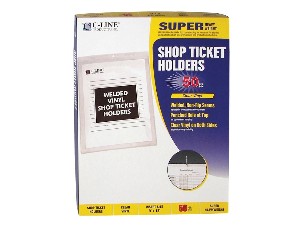 C-Line Clear Vinyl Shop Ticket Holder Both Sides Clear 50" 9 x 12 50/BX 80912