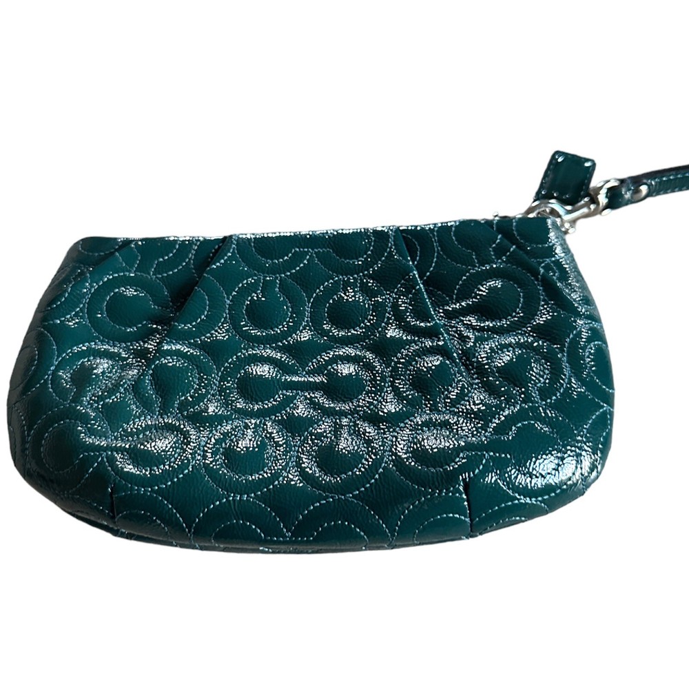 This Coach wristlet is a gorgeous Y2K throwback in a stunning jade teal green! The signature debossed patent leather looks luxe and holds up well despite being pre-owned. It’s the perfect compact size for essentials, and the condition was accurately described—just a little cleaning made it look fresh. Love the vintage charm and quality craftsmanship! Great find for a Coach collector.