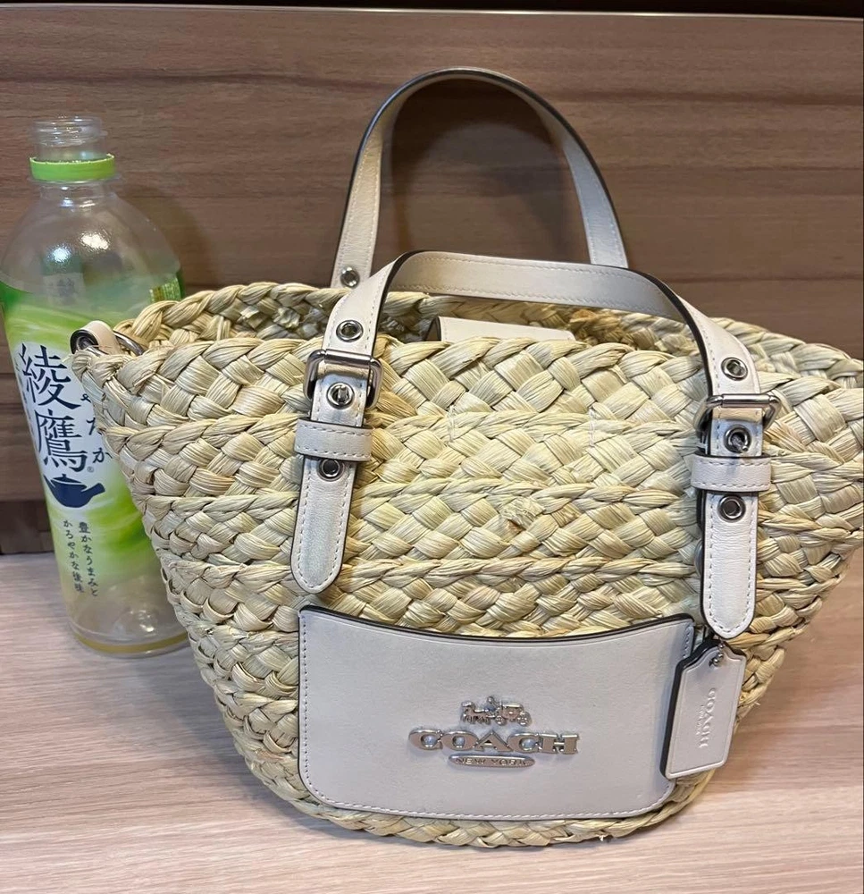 COACH Basket Bag Straw. Leather. 2way