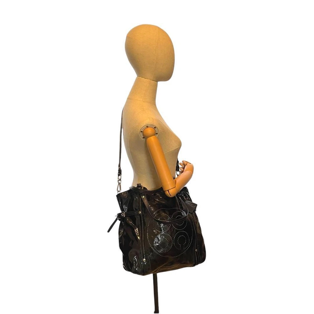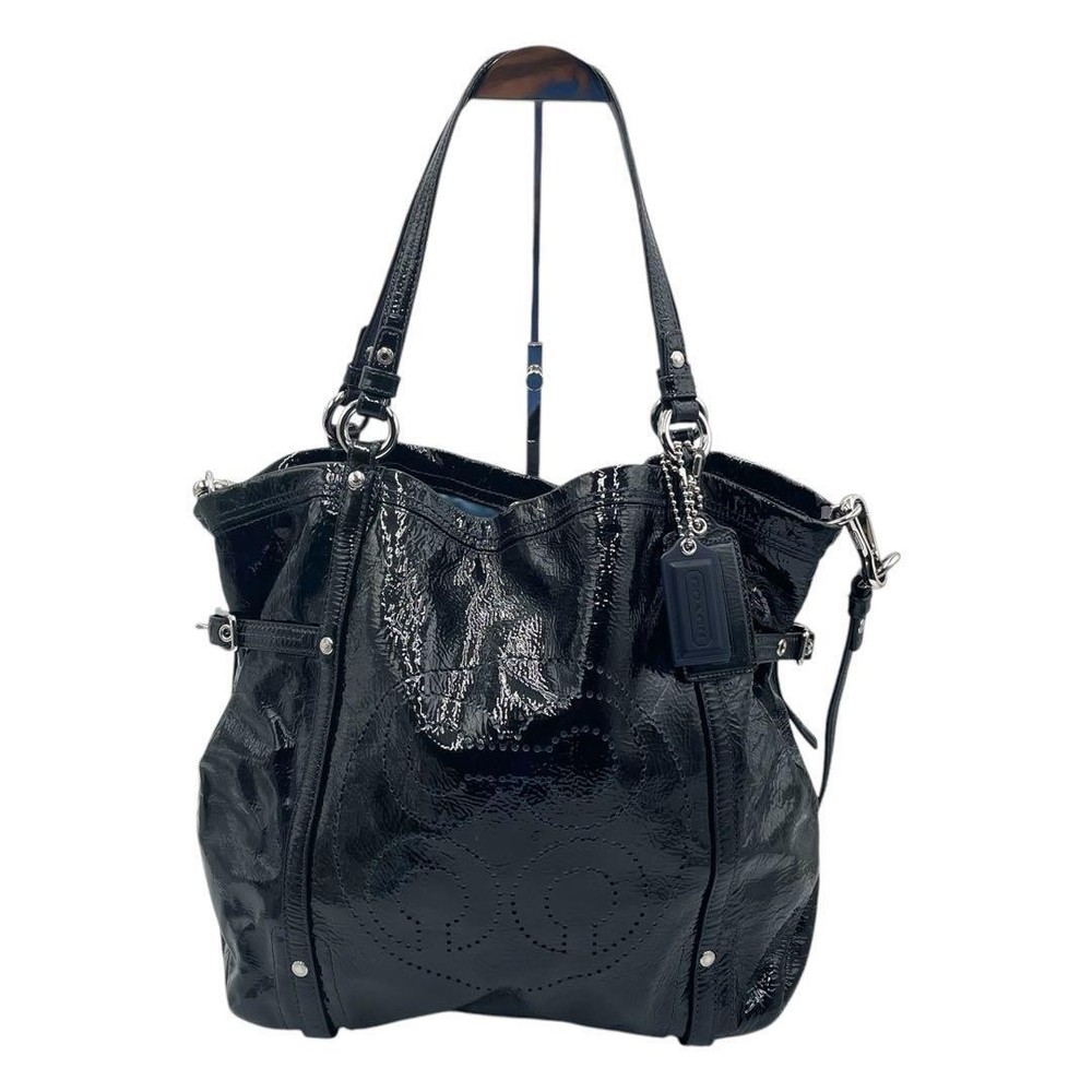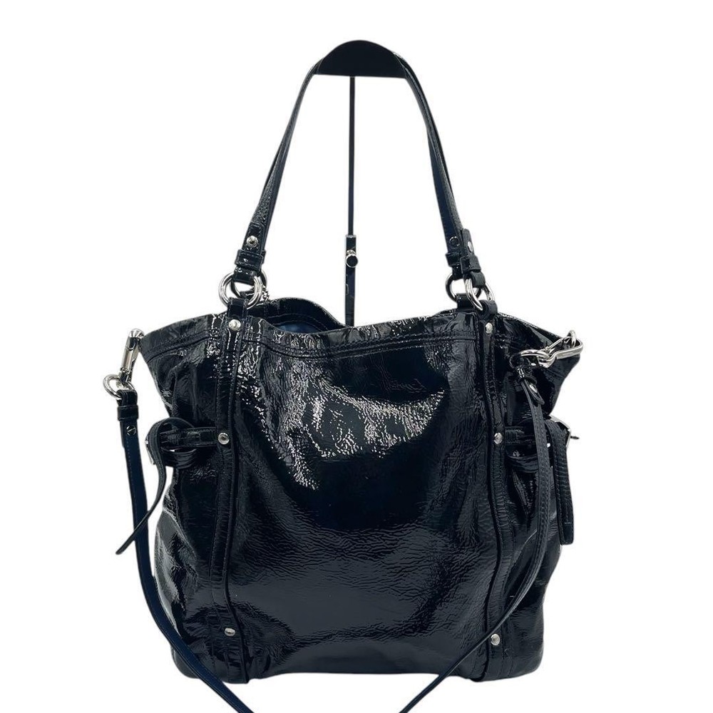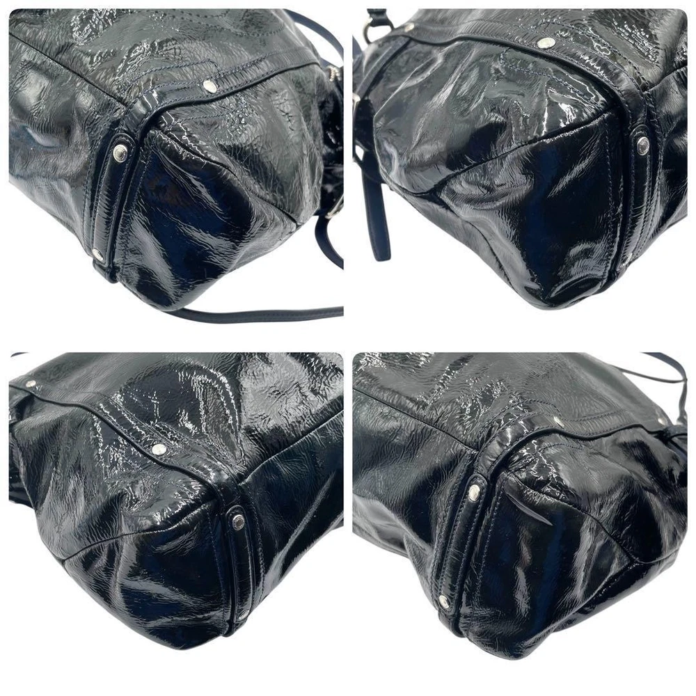 COACH Black Enamel 2WAY Shoulder Bag Large Capacity 17065