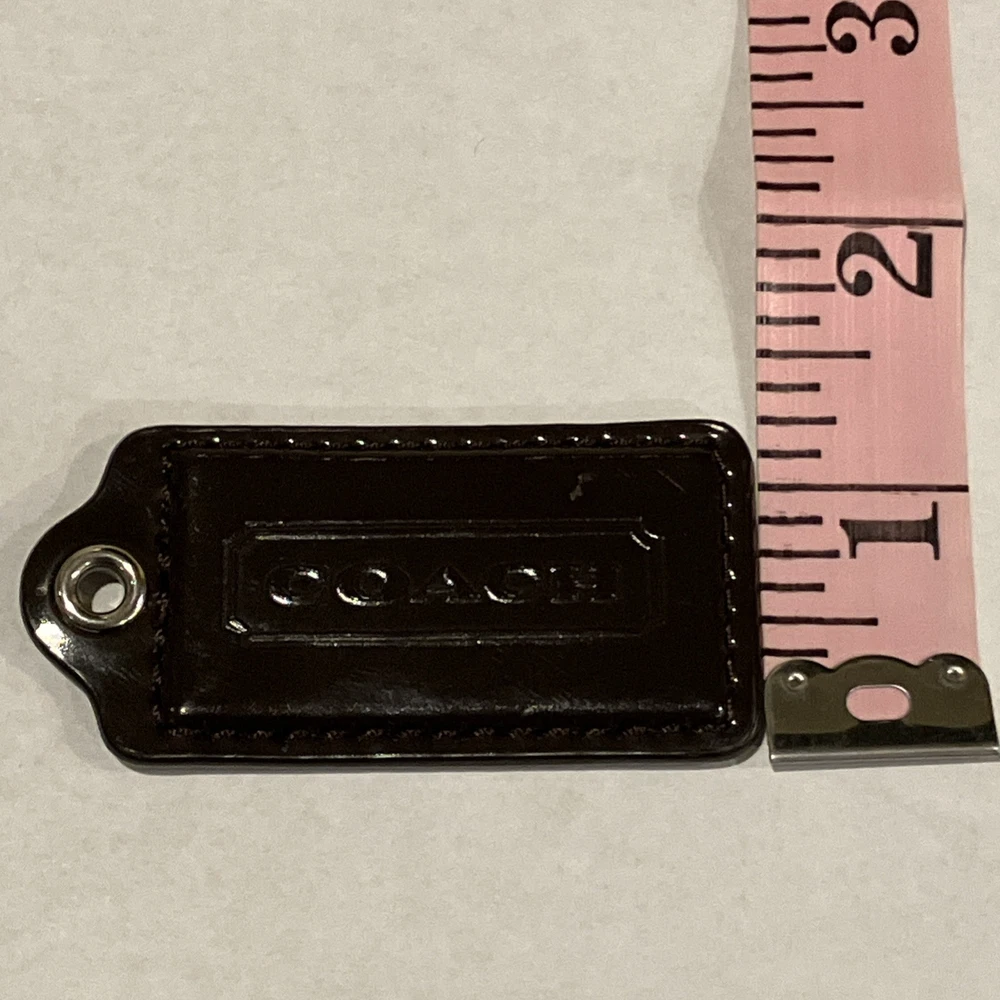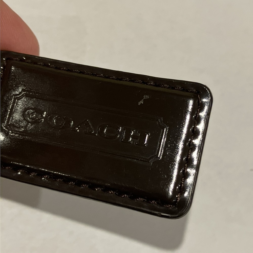 This Coach key fob is a stylish little upgrade for any bag or keys! The dark brown patent leather looks sleek, and the nickel hardware adds a luxe touch. Even with the tiny scuff (barely noticeable), it’s totally worth it—great quality and a perfect gift or treat-yourself piece. Love it!