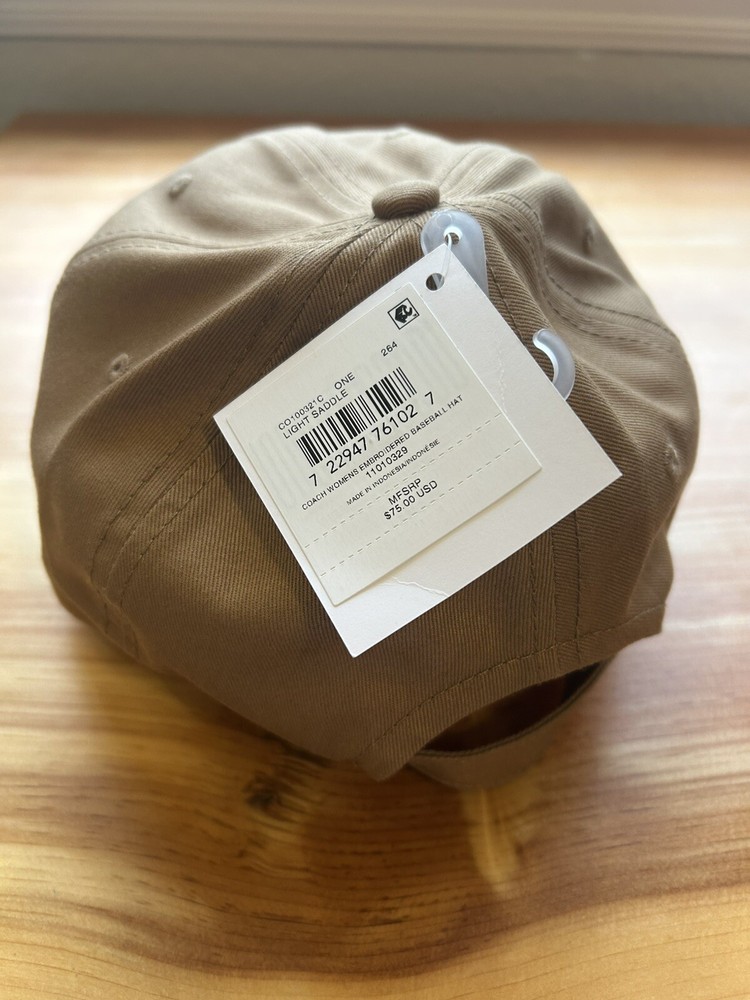 Elevate your accessory game with this stylish COACH Women's Baseball Cap in Light Saddle Brown. The cap features an elegant solid pattern with delicate embroidered accents that add a touch of sophistication to any outfit. It is made of 100% cotton material, which makes it breathable and comfortable to wear for long periods. The cap is adjustable to fit all head sizes and is perfect for any casual occasion. Its timeless design makes it a great addition to any wardrobe, and it is an ideal gift for any fashion-conscious woman. Get this COACH Women's Baseball Cap today, and elevate your style to the next level! Thank you!