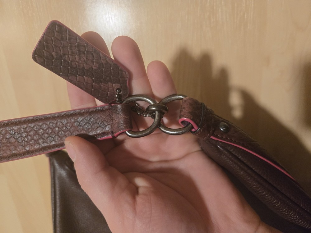 COACH Exotic Oxblood Trim EAST/WEST Harley Hobo F20917 QB Leather Purse Bag Condition is good. no stains or rips. Leather is in good shape. zippers work good. missing the long strap. please see photos for references to any flaws listed Condition is 9/10 thank you for shopping #CoachBag #boho #glam #highfashion #depop
