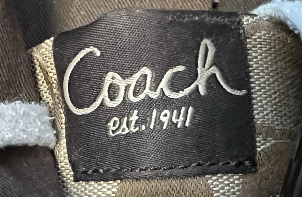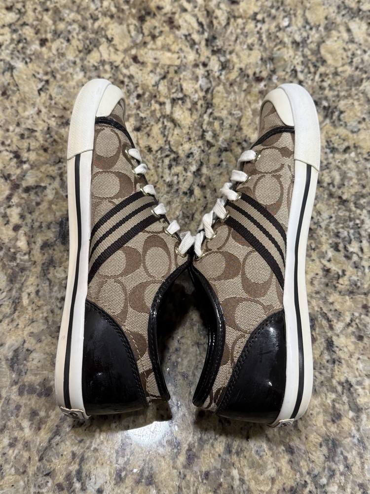 Step into effortless style with the COACH Women's Brown Monogram Signature Folly Lace-Up Sneakers. Crafted for the modern woman, these sneakers feature a chic fabric upper adorned with the iconic COACH logo, delivering a touch of designer elegance to your casual ensembles. The low-top silhouette, combined with a comfortable round toe and flat heel, ensures a smooth stride and all-day comfort. Designed with versatility in mind, these sneakers are suitable for a range of occasions, from a day at the office to a leisurely weekend stroll. The breathable fabric lining and foam insole provide a cozy fit, while the durable rubber outsole offers reliable traction. Whether you're navigating the city streets or exploring the classroom, these sneakers are a smart addition to your footwear collection. Pre-owned condition, minor signs of wear but clean! Heel logo worn due to age/wear. See pictures! Women's size 8. ***OC-boutique.and.more Specifics You Should Know*** Items ship quickly, same day / next day - all through USPS; unless otherwise notated in the listing. (Excluding Weekends & Holidays) I attempt to provide the most affordable shipping carrier available for the size & weight of the package. Shipping Materials Used: clean recycled boxes, new boxes, poly-mailers, bubble mailers, bubble wrap, packing peanuts or any combination of the above to ensure your items are secure and arrive in excellent condition. Please carefully review all pictures & descriptions, as that will clearly express the condition of each item. The listing will state if an item is USED, NEW, and any wear, damages or defects. Please check out my full list of available items and be sure to follow as listings are frequently added! All sales are FINAL. No returns accepted. Please reach out if you have any questions.