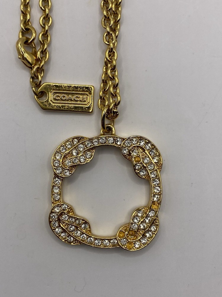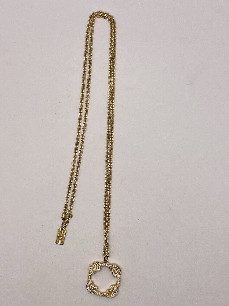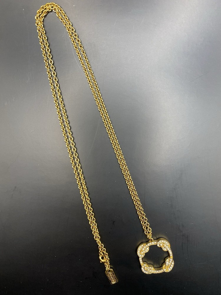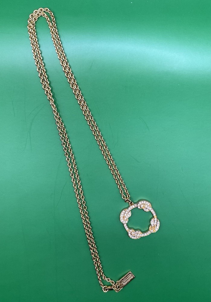 COACH Gold Pave Pendant 32 Inch Chain Small crystals missing lower right