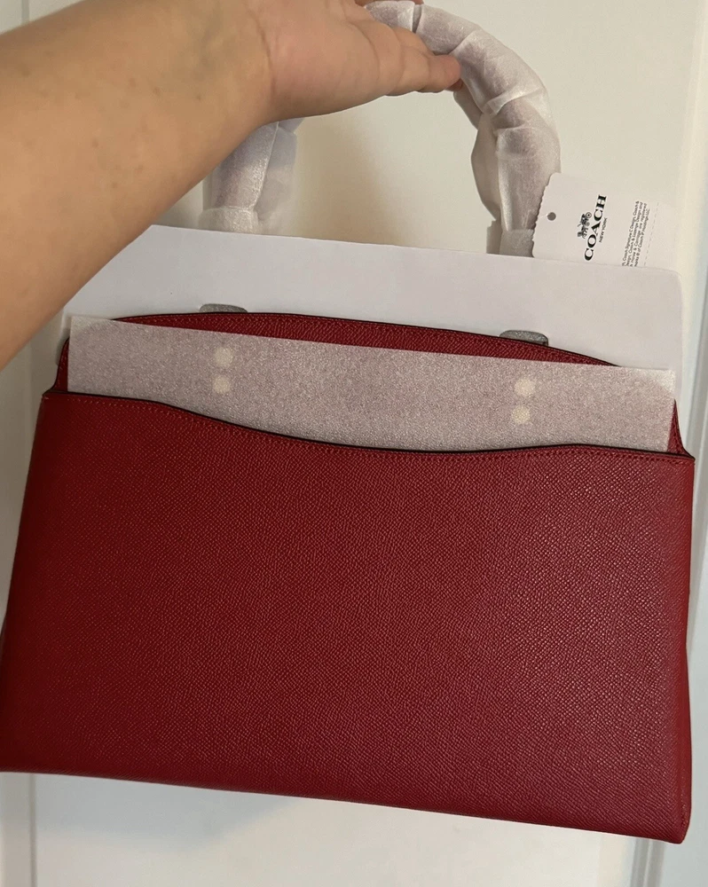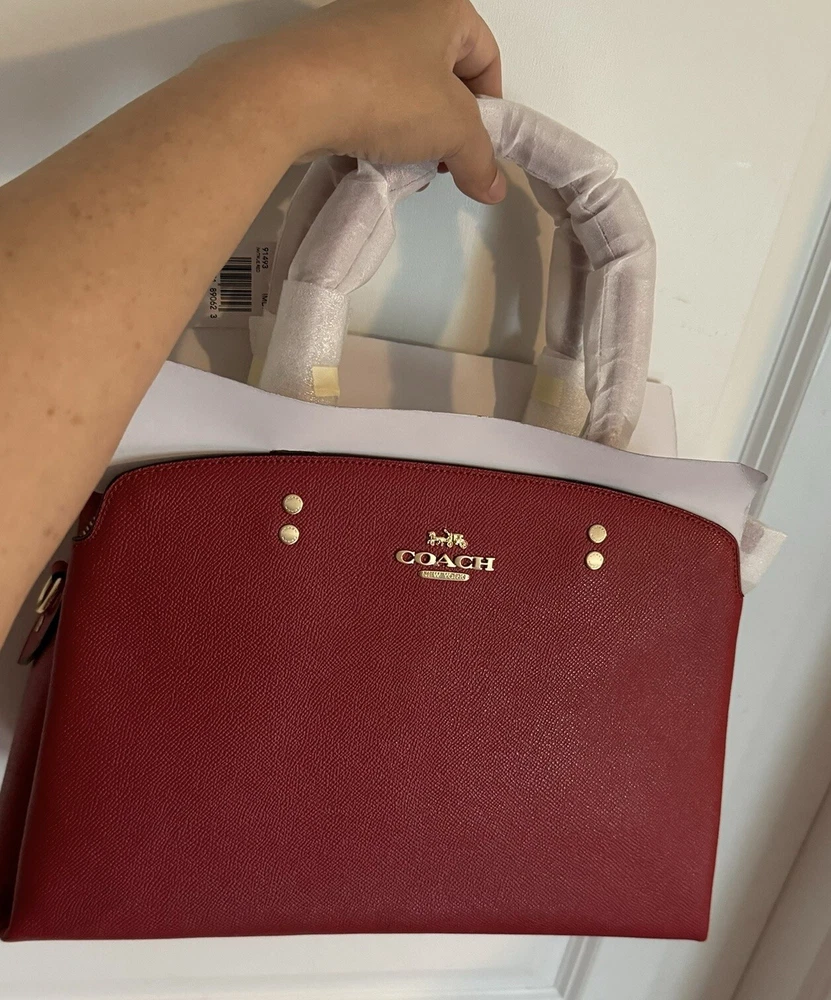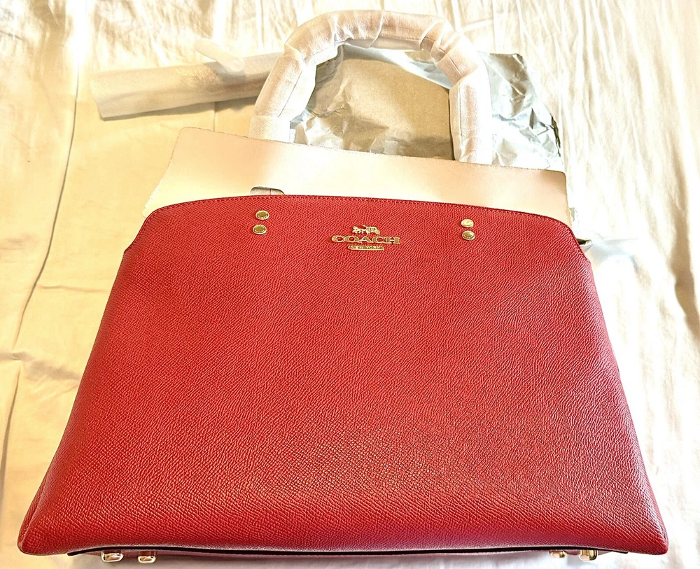 NWT COACH LILLIE CARRYALL LEATHER GOLD/CHERRY RED TOP HANDLE WITH SHOULDER STRAP. Condition is New with tags. Shipped with USPS Priority Mail.