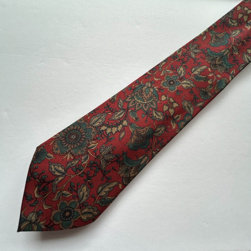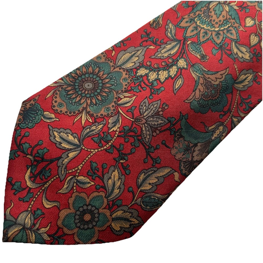 Elevate your formal attire with this exquisite Coach paisley tie, a timeless accessory that effortlessly complements a variety of occasions. Crafted from luxurious silk, the tie measures a classic 57 to 60 inches in length and features a classic width, ensuring a perfect knot and a smooth drape every time. Its vibrant reddish rust, green gold palette is inspired by the ancient madder plant (?), bringing a preppy yet elegant touch to your ensemble. Expertly made in Italy, this designer tie is a testament to Coach's commitment to quality and style. The intricate paisley pattern adds a sophisticated depth to the tie, making it an ideal choice for weddings, Easter events, or any formal gathering. The handmade nature of this tie further emphasizes its unique craftsmanship and enduring appeal. Add a touch of classic luxury to your wardrobe with this exceptional piece.