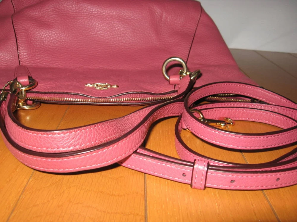 Absolutely love this Coach bag! The pink color is vibrant and the pebbled leather feels so luxurious. It's versatile as a shoulder or crossbody bag. Arrived perfectly packed from Japan, exactly as described. Great seller communication too!