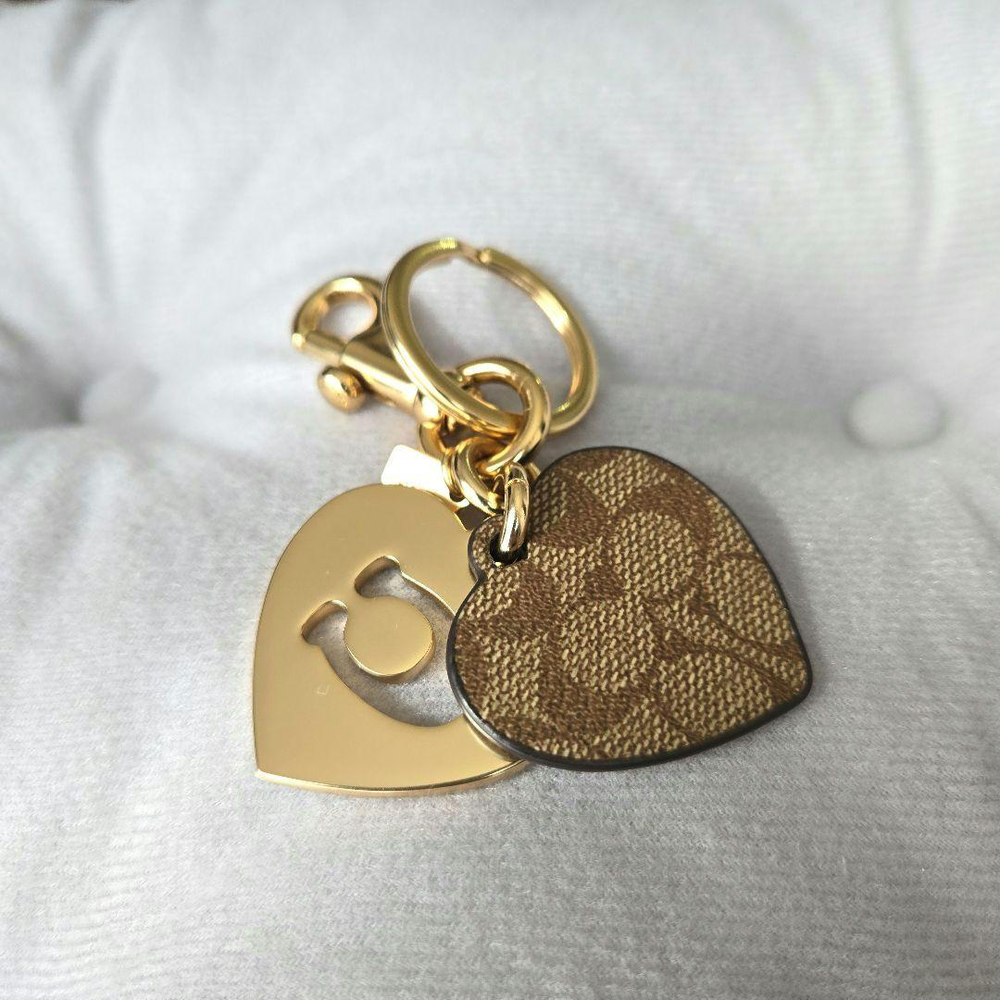 COACH Gold Heart Leather Keyring Bag Charm Multicolor Accessory Japan New