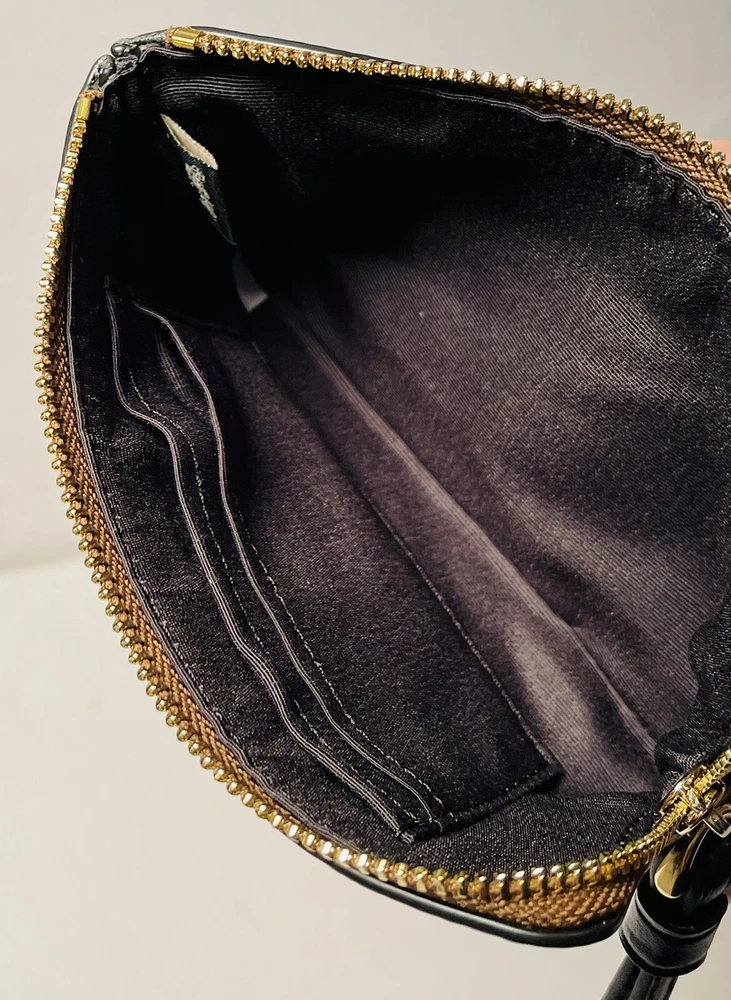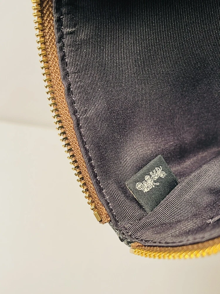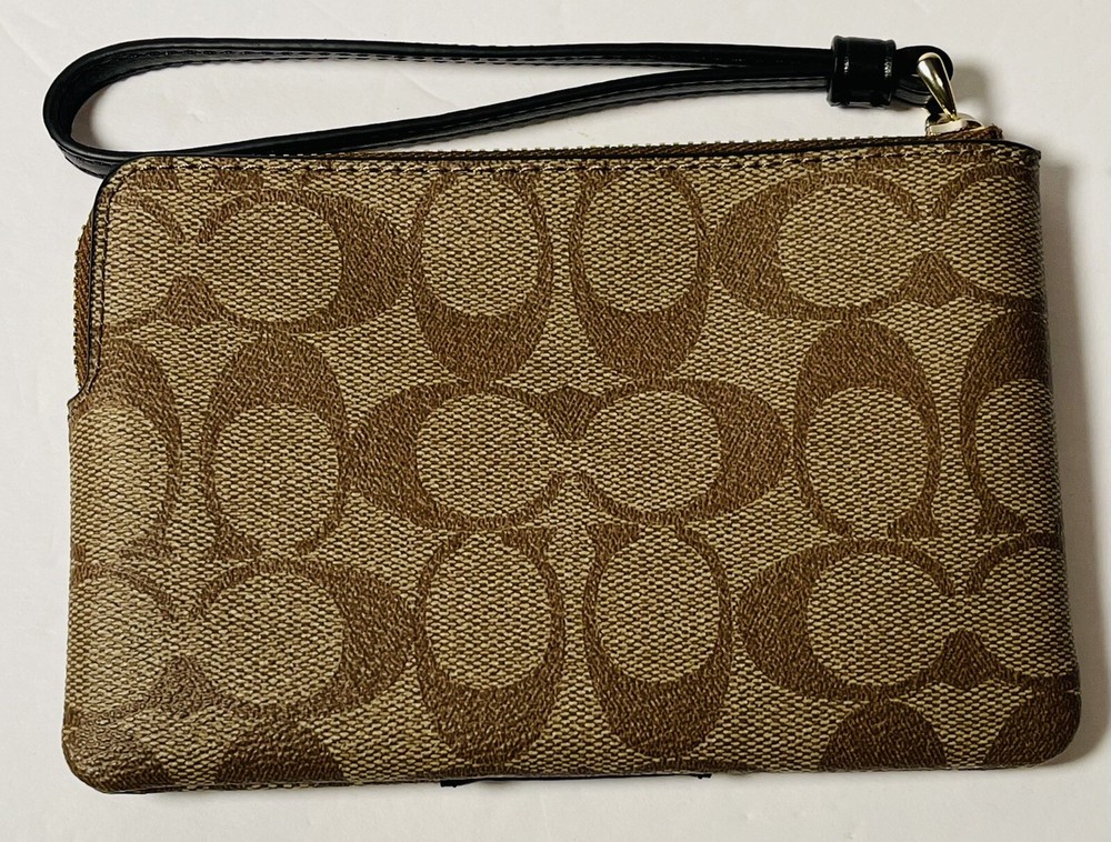 HomeCOACH Signature Khaki Black Corner Zip Wristlet Wallet Women Brand New