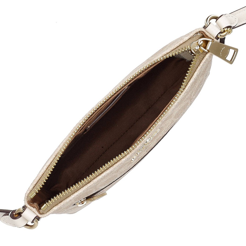 COACH Signature Leather Shoulder Bag for Women in Beige with Zipper Closure