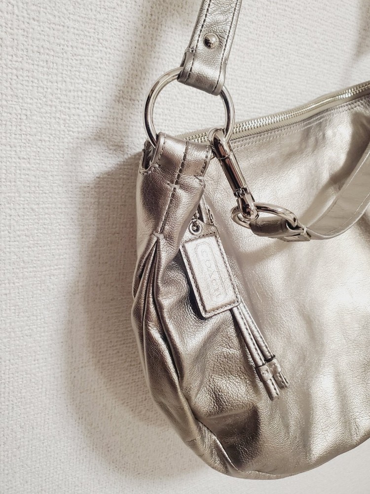 This Coach 2way shoulder bag in silver is absolutely stunning! The design is so versatile—perfect for both casual and dressy looks. The quality is top-notch, and the seller packed it with great care. Shipping from Japan was smooth, and the bag arrived in perfect condition. Highly recommend this stylish and functional piece!