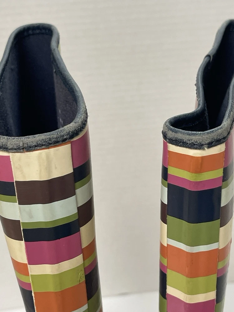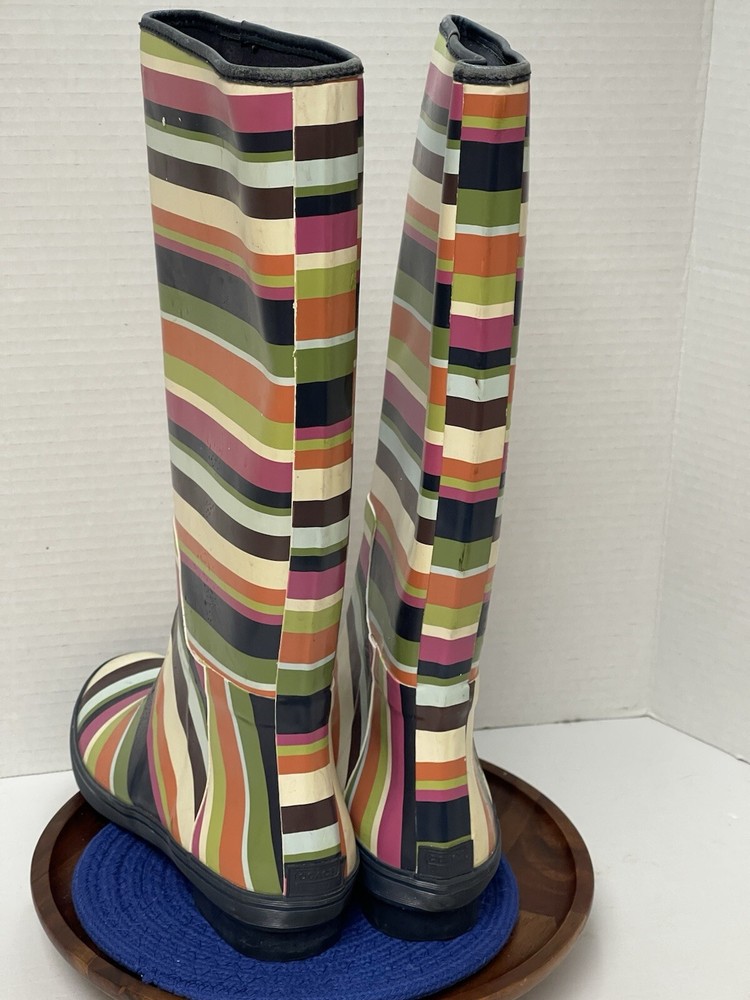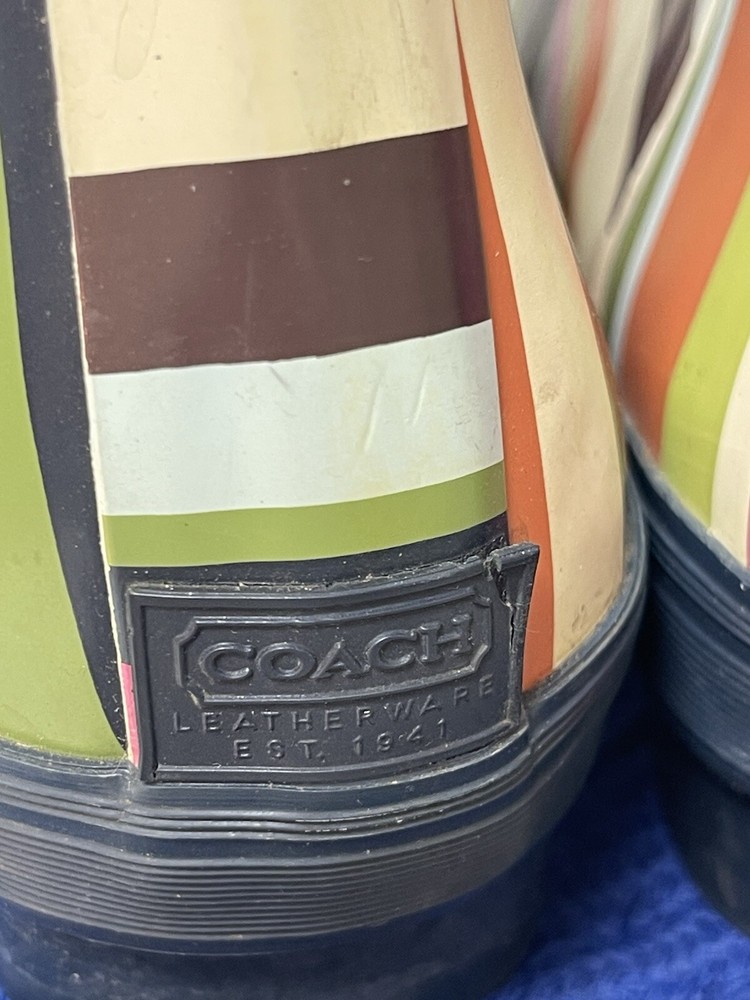 Coach “Pammie” mid calf striped rubber rain boots Size 7B Multi color