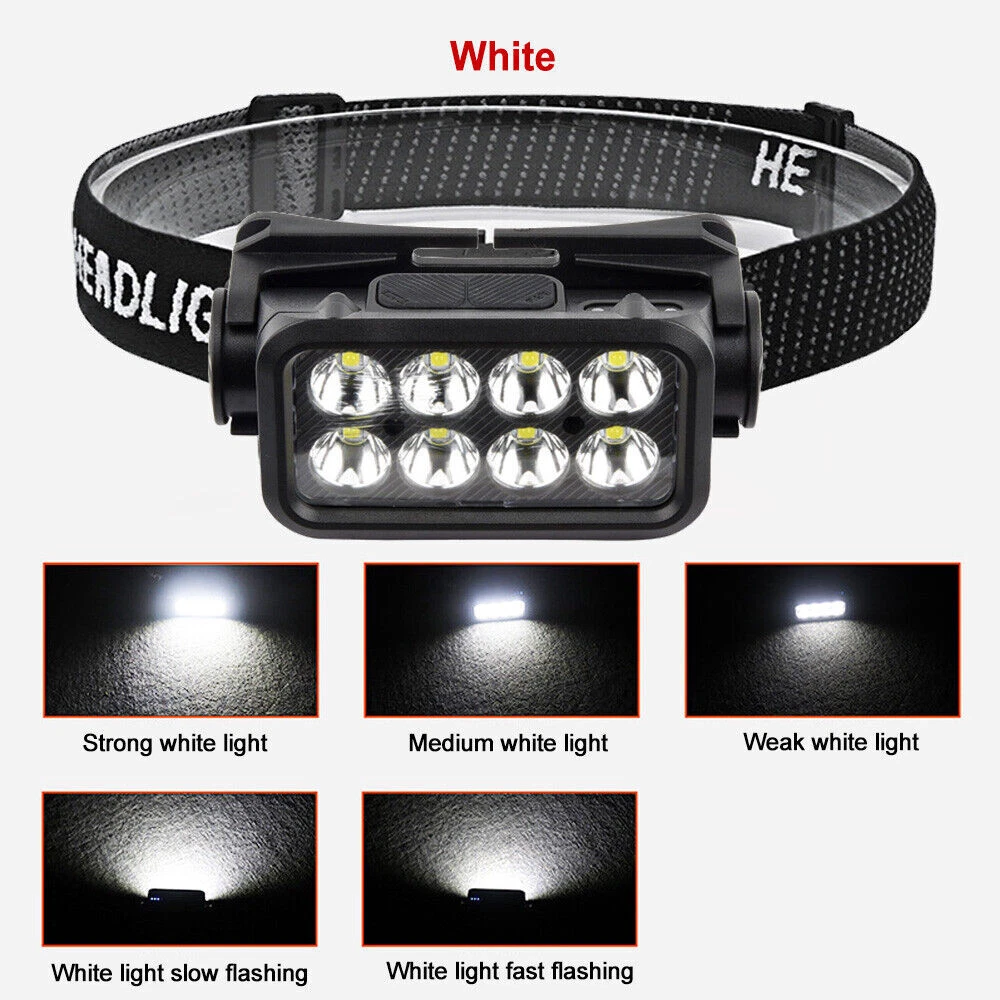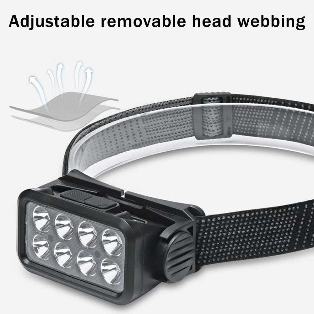 COB LED Headlamp USB Rechargeable Headlight Torch Work Light Bar Head Band Lamp Describe: ⭐1.Material: high-quality ABS+silicone material, strong and durable. ⭐2.Headband: Comfortable and highly elastic headband, firm and not easy to fall, detachable and easy to clean. ⭐3.Adjustable: the headlight back clip bracket can be adjusted between 0-90°, which is convenient and practical. ⭐4.Charging method: Type-C charging, compatible with laptops, charging treasures, etc., convenient and powerful. ⭐5.Power display: percentage power display, accurate control of remaining power. ⭐6.Applicable to: very suitable for outdoor camping, hiking, fishing, emergency and other scenes. Specification: Name: Outdoor USB charging sensor headlight Colour: Black Lamp bead: COB Lumen: 500lm Charging method: Type-C Charging voltage: 5V/0.5A Battery capacity: 1200mAh Charging time: 1.5h Battery life: 2-4h White lighting mode: 5 gears (white light strong light-white light weak light-white light low light-white light flashing-white light S0S) Sensing distance: within 15cm Waterproof grade: IPX4 Maximum range: 200m Net weight: 96g Package size: 9.8*5*8.2mm packing list: 1 * headlight 1 * headlight strip 1 * charging cable