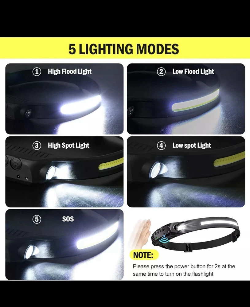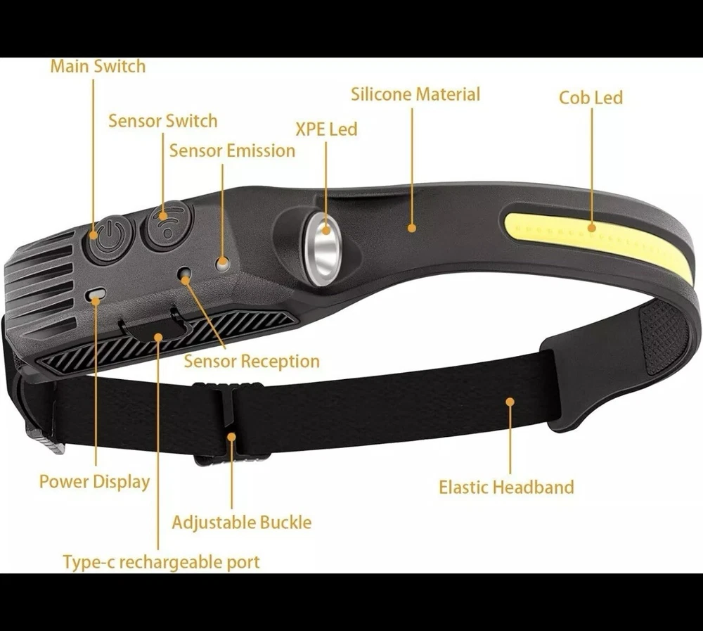Illuminate your path with the COB LED Headlamp, a versatile and durable headlight that blends functionality with comfort. Designed for practical use, this headlamp features a powerful LED bulb, offering a substantial operating range of up to 150ft, to keep your hands free for other tasks. Its sturdy construction is matched by a sleek black design, ensuring it stays put and looks good whether you're camping, fishing, or simply navigating through the dark. The headlamp is powered by a reliable lithium battery and includes a USB charging source, making it convenient to recharge and reuse. With additional features such as being waterproof and coming with batteries included, this headband lamp is an essential tool for anyone who finds themselves in low-light situations. Lightweight at just 2.5 ounces and with an easy-to-adjust headband, it ensures a secure fit for all-night comfort.