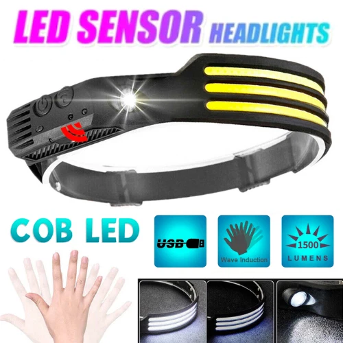 COB + LED Rechargeable Headlamp Headlight Torch Work Light Head Band Lamp 6000K Features: ❤️ Bright & 230°Wide Beam: Featuring high bright COB and LED light source, this wide beam headlamp offers a 230°wide-angle illumination and 1200Lumens instead of lighting up only a small area in front of you like traditional headlight. It has an extra bright LED spot light suitable for a variety of scenarios to meet your various needs, for example, camping, running, biking, working and repairing. ❤️ Motion Sensor & Easy to use: This rechargeable induction headlamp designed with motion sensor mode, easily control the headlamp even if you have gloves on, won't dirty the unit as well as the gloves. Press the sensor button when the light is on, then you can switch the light ON/OFF by waving your hand. If there is any obstacle within 10 cm in front of the sensor receiver the light will also ON/OFF when sensor mode. Red and green indicator lights are on together when motion sensor mode. ❤️ For 3 White Light Model: lighting modes: COB 3 White High Mode, COB 3 White Low Mode, LED High Mode and LED Low Mode. Easy to operate, short press power button to switch the mode, long press to turn on strobe mode. ❤️ USB Rechargeable Headlamp: Built-in rechargeable 1500mAh large capacity battery. Not only saves the cost of replacing batteries but environmentally friendly. Charging time: 2h fully charged. Working time: 2-8h after fully recharged. Note: Working time will vary due to different lighting mode you use.) ❤️ Lightweight & Adjustable Headband: The led headband is made of ABS and silicone, it is soft and comfortable, just only 3.52 ounces. It's possible to fold but not affect the use, light weight and small size design can easily fits in your pocket. IPX4 waterproof means it is protected against splashing water from all angles, you don't need to worry if it rains or snows unexpectedly. Specification: Touch switch: strong light -> medium light -> long press and fast flashing, sensor switch Battery type: polymer lithium battery 1200mah Working voltage: 3.0V-4.5V Waterproof rating: IPX4 (not soaked in water) Body material: silicone Charging time: 3 hours (First gear) COB highlight: 350 lumens, lighting time 2.5~3H (Second gear) COB low light: 130 lumens, lighting time 3.5~4H (Third gear) XPE highlight: 120 lumens, lighting time 4~4.5H (Four gears) XPE low light: 50 lumens, lighting time 6*6.5H Package included: 1/2x Head Lamp 1/2x USB Cable Feedback: 1) Your Feedback is really important to us,please take a few seconds to leave great feedback if you are satisfied with our product or service, thank you so much! 2) We always offer the lowest price for best goods and service to you. 3) Please contact us before leaving neutral(3 stars) or negative(1-2 stars) feedback.We will try our best to solve the problem and leave you a happy shopping mood here. Thank you!