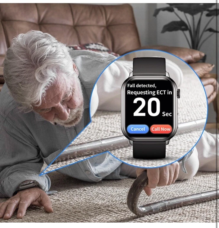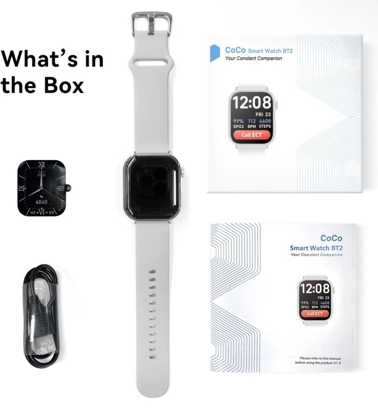 【24/7 Health Monitor】: The CoCo Smartwatch, connected via Bluetooth, offers continuous and precise monitoring of critical vital signs throughout the day, enabling users to establish a baseline for their health. It measures blood oxygen SpO2 levels, heart rate, and sleep patterns (from 8 PM to 10 AM), while the BT2 can even assess stress levels and breathing rates. 【Fall Detection & Emergency Call】: CoCo's Personal Emergency Response System (PERS) provides users with two dedicated buttons—a crown button and a watchface button—to initiate an Emergency Call (ECT Call) for notifying family or caregivers in case of an emergency. In the event of a fall, the CoCo smartwatch automatically triggers ECT calls to the user's designated emergency contacts if the user remains on the ground for more than 20 seconds. 【Advanced Reminders】: The BT2 excels as a reliable reminder, preventing users from missing appointments or medications. Through the CoCo Mobile App, caregivers or admins can remotely schedule precise times and dosages for medications. The smartwatch also prompts users to take breaks, encouraging short walks and reminding them to stay hydrated when they've been sitting for extended periods. 【Enhanced hardware】: Equipped with a 1.85" HD extra-large full-touch screen, CoCo BT2 smartwatch allows for easy reading and navigation. It offers 100+ sports modes to check all-day activity data and record them. Customize your experience by changing the clock face, theme, finding your phone, using the flashlight, playing games, controlling the music player, and checking the weather on the BT2. 【Seamless Connectivity】: Connect to your smartphone and enjoy support for 18 languages. The smartwatch syncs language and date settings automatically with your smartphone, ensuring a unified user experience. If the language or time isn't right, a quick smartphone connection will align your smartwatch with your preferences. This feature simplifies communication and personalization, making your smartwatch your perfect companion. 【Never Fall Apart with You】: CoCo prioritizes customer satisfaction and is dedicated to addressing any concerns or issues you may have experienced. We are committed to providing excellent products and services, backed by a 12-month warranty. CoCo also features a dedicated YouTube video channel to offer tutorials and usage tips. Furthermore, we provide 24-48 working hours of guaranteed email support.