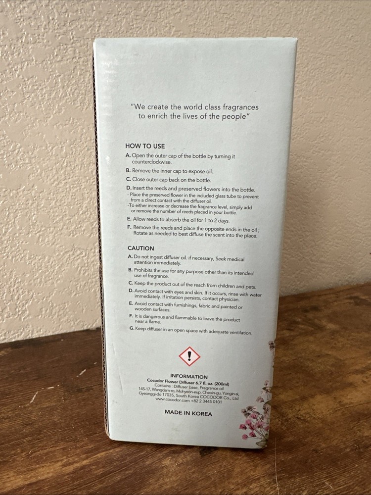 The COCODOR Flower Reed Diffuser Set in White Jasmine scent is a modern and stylish addition to any home or office space. This 6.7oz liquid diffuser features real flowers and a glass material, offering a floral theme that helps reduce emotional stress and anxiety. The sleek design and effectiveness of the diffuser make it a perfect choice for adults looking to create a relaxing atmosphere in their living environment. Made in Korea, Republic of, this Cocod'or product is sure to add a touch of elegance and fragrance to any room.