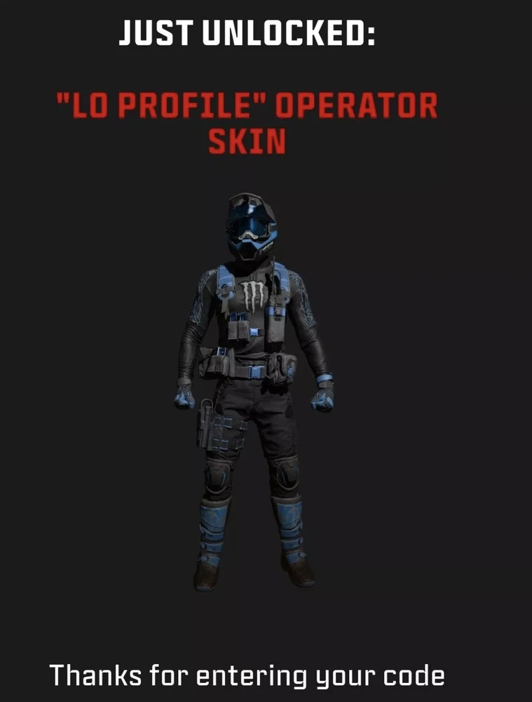 Call of Duty MW3 Modern Warfare 3 * NEW * (Blue) Monster Energy Operator Skin "Low Profile" (BBQ Operator) "LOW PROFILE" (BBQ) OPERATOR SKIN CODE WILL BE SENT VIA MESSAGES AFTER PURCHASE Included is: [ x1 ] Monster Energy Operator Skin " Low Profile" (BBQ) Operator Skin codes will be sent out via eBay messages INSTANTLY! Works on ALL platforms - Region Free (Xbox, PC, PS4, PS5) Fastest Delivery on eBay! Guaranteed same day delivery! :) Please check your messages during business hours for your "Low Profile" BBQ Operator Skin Code! FIRST COME, FIRST SERVE!