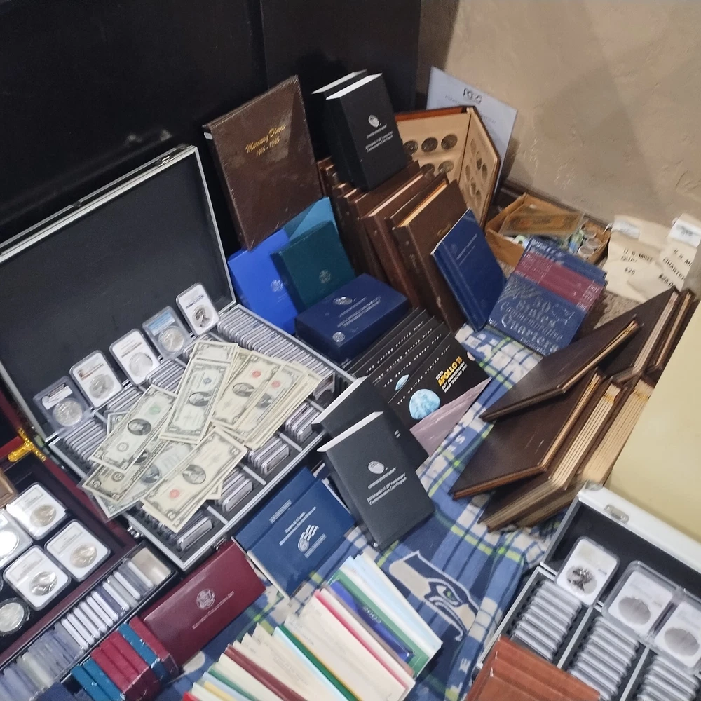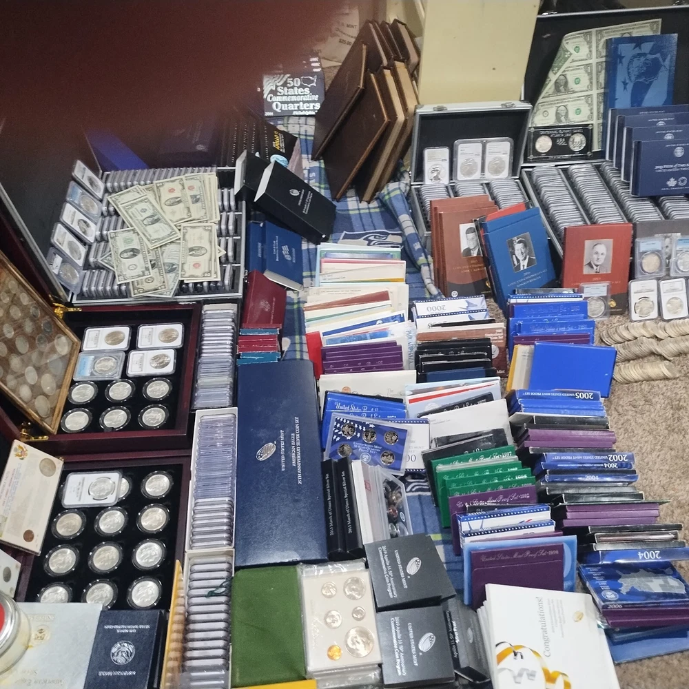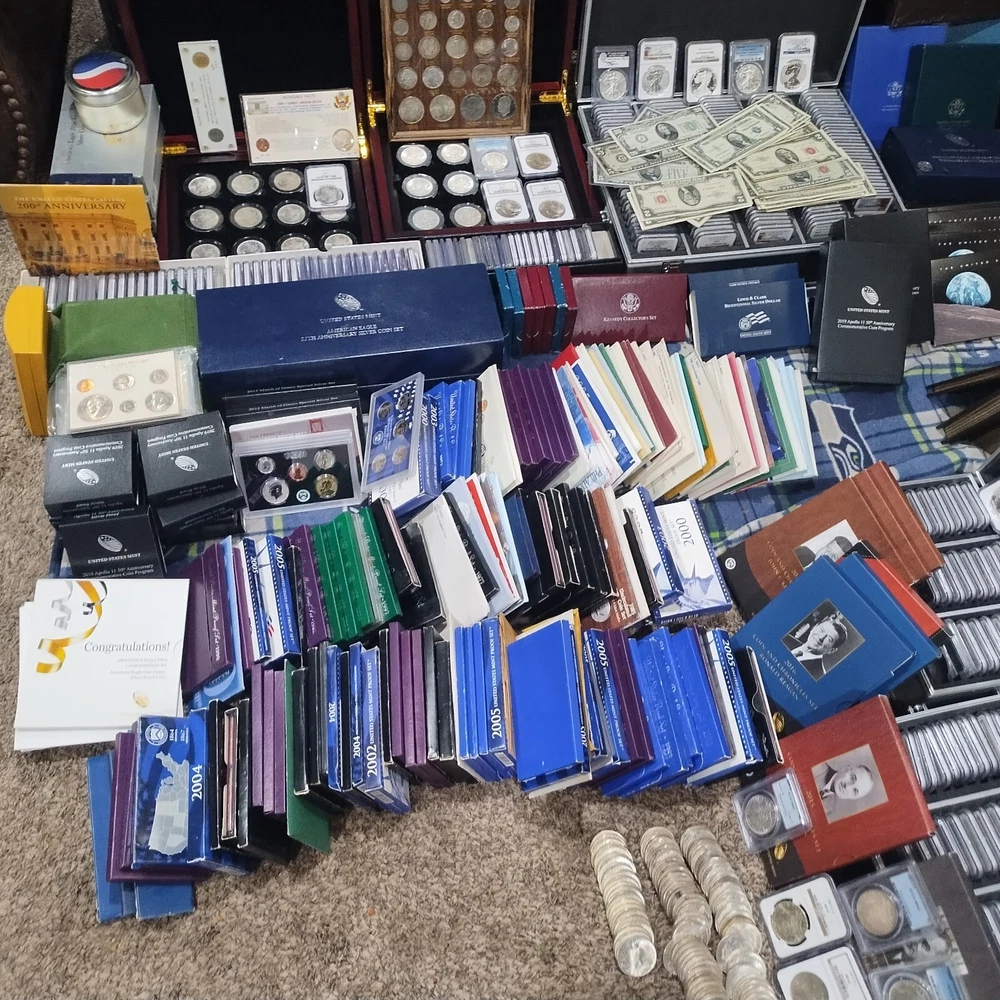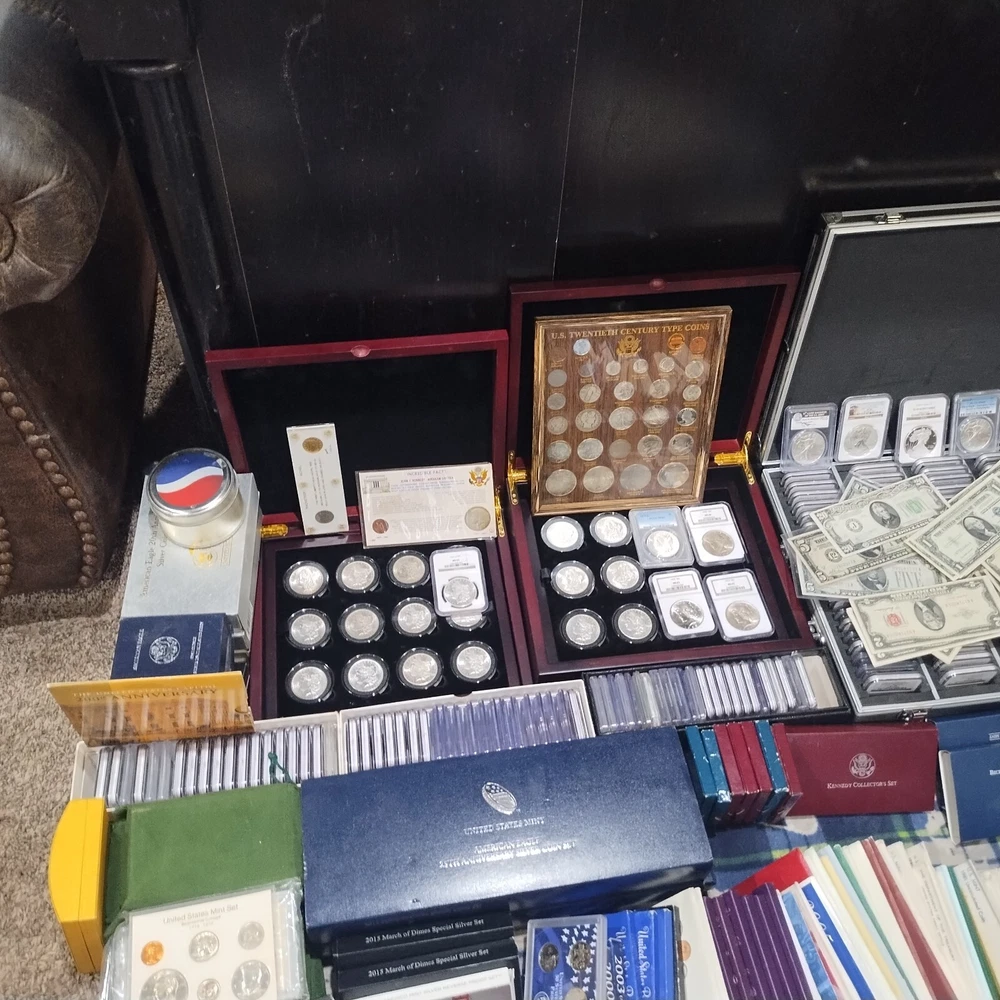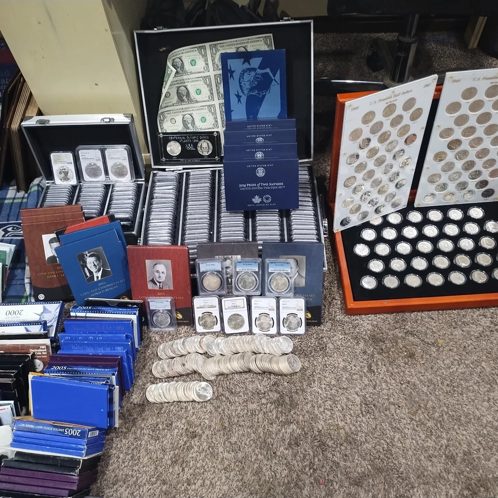 This coin grab bag lot contains a variety of old silver . The denomination of the coins varies, and they were struck in San Francisco, Denver, and Philadelphia. , and are a great addition to any collection or lot. Whether you are a collector or just looking for some unique coins to add to your collection, this grab bag lot is sure to have something for everyone. some BU some slabs----proofs--these are put together for collectors to enjoy as I have over the last 40 yrs. ALL U.S. LOTS OF SILVER--each bag will have at least 1 oz silver along with other great coins OVER $75.00 VALUE ALLGRAB BAGS ARE RED BOOK OR EBAY SOLD PRICING WHAT YOU MIGHT GET proof sets mint sets morgans peace $ american silver eagles wheats commens paper money