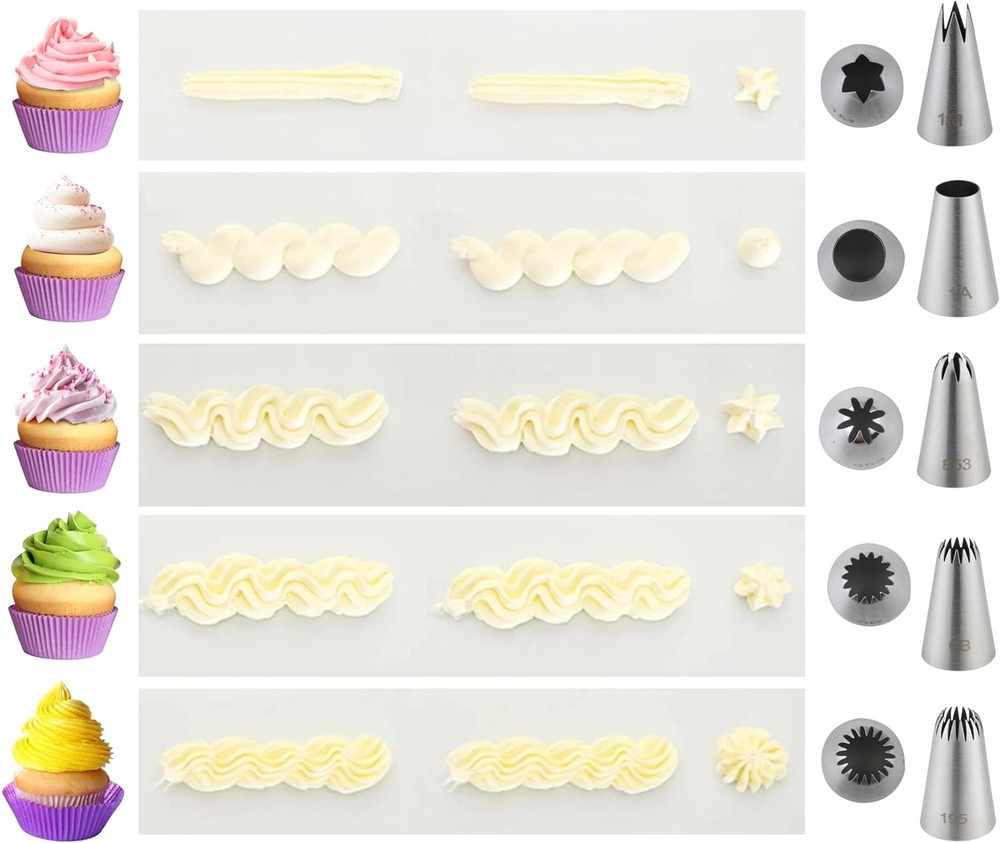 1. Versatile Design: Our stainless steel piping tips offers unparalleled versatility for your baking endeavors.Each frosting tips is carefully selected to provide a diverse range of decorating options.The piping tips set includes a round plain tip for classic borders and outlines,an open star tip for beautiful swirls and rosettes,a closed star tip for intricate designs and textures,a drop flower tip for delicate floral embellishments,and a french star tip for unique patterns and accents.With these large piping tips, you'll mees all your needs. 2. Professional-Quality Craftsmanship: Crafted from high-quality stainless steel, our cake decorating tips are built to last. They are resistant to rust, corrosion, and bending, ensuring years of reliable performance in your kitchen. The smooth, seamless construction of each cake piping tips ensures precise piping and consistent results every time. Whether you're a professional pastry chef or a home baker, you can trust in the durability and reliability of our large piping tips to meet your decorating needs. 3. Unleash Your Creativity: With our set of piping tip, the only limit is your imagination. Experiment with different frosting colors, textures, and techniques to create unique and eye-catching designs. Create intricate lace patterns, elegant scrollwork, whimsical shapes, and more to personalize your baked goods and impress your friends and family. Whether you're decorating a birthday cake, a wedding cake, or just indulging in some creative baking therapy, our cake tips for decorating will inspire you to push the boundaries of your creativity. 4. User-Friendly Design: Our piping tips are designed with the user in mind, making them suitable for bakers of all skill levels. Each decorating tips is easy to handle and control, allowing you to achieve professional-looking results with minimal effort. Plus, our cupcake piping tips are easy to clean and dishwasher safe, making post-baking cleanup a breeze. Whether you're piping delicate details or bold designs, our cake tips make the process smooth and enjoyable. 5. Perfect Gift for Baking Enthusiasts: Treat the baker in your life to the gift of creativity with our 5-Piece Stainless Steel large piping tips set. Whether they're a seasoned pro or just starting out, they'll appreciate the versatility, quality, and convenience of our big piping tips for all their baking adventures. Give the gift of endless decorating possibilities with our premium piping tips set.