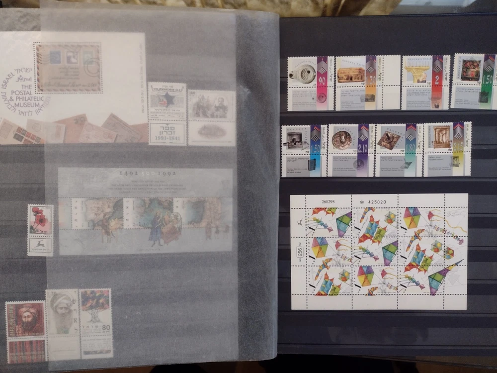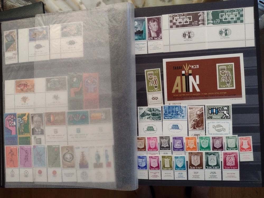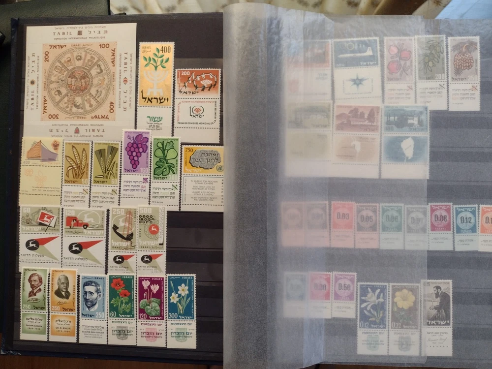 ISRAEL COLLECTION ALBUM MNH ALL STAMPS FULL TABS COMPLETE SETS 1954-2001, C18-C47,J12-J20,O1-O4,FIRST DAY COVER, 920+ STAMPS, 56 SS. 18 SCANS TO USA -$24.75 INTERNATIONAL MAIL $88.00 REFUND SHIPPING WILL BE PAID BY BUYER