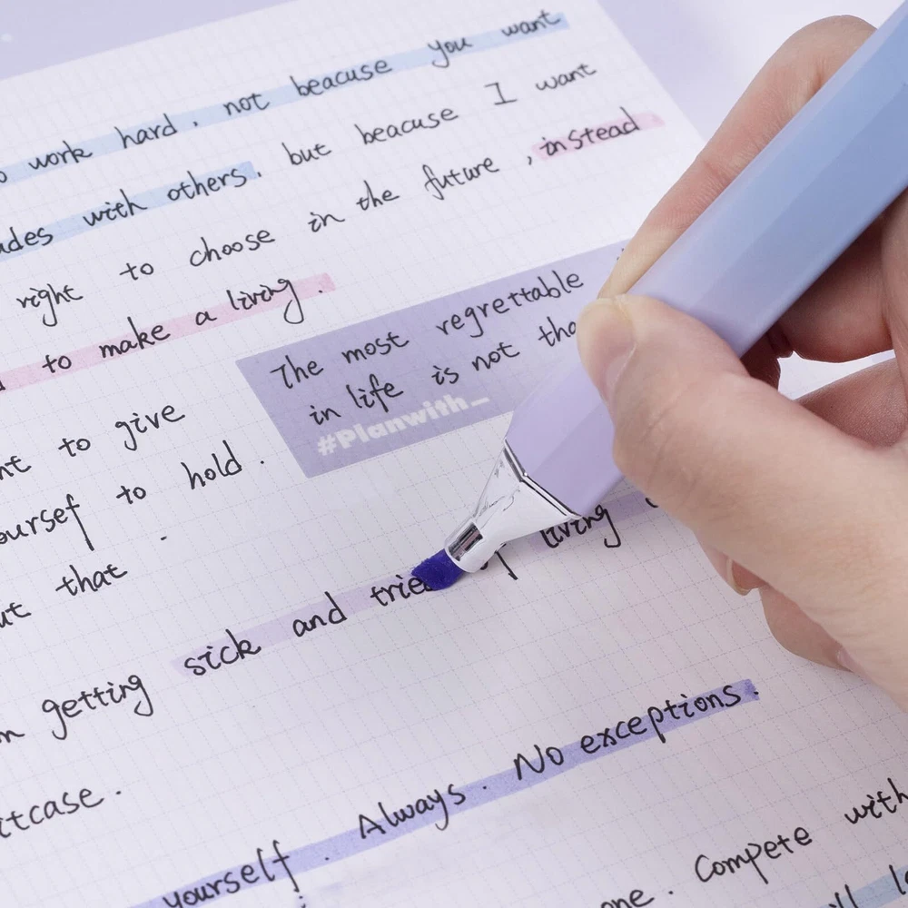 Mild Pastel Color- the highlighter pen set comes in 12 mild pastel ink colors that are perfect for highlighting,coloring for artwork, making notes,drawing, doodling,writing.The light colors are easy to read. 2.Smooth Writing: the highlighters assorted in 12 colors are with chisel tips,making it easy to write with and produce smooth lines.The set of highlighter marker pens are water based non-toxic ink. Attractive Design: the cute aesthetic highlighters for planners feature chic design and nice colors.Perfect gift pens for women,back to school supplies aesthetic,painting lovers, students , stationery addict and office supplies Mild Pastel Color- the highlighter pen set comes in 12 mild pastel ink colors that are perfect for highlighting,coloring for artwork, making notes,drawing, doodling,writing.The soft colors work great and are easy to read. Smooth Writing: the journaling highlighters assorted in 12 colors are with chisel tips,making it easy to write with and produce smooth lines.The pen set of highlighters markers for school are water based non-toxic ink. Easy to Write with: The unique design of pen barrel feels so great to write with. There are 3 color series with 12 colors to choose from for the writings. Nice colors, good mood to write. Pack-12pcs, 12 colors, ink color is same as the color of pen cap