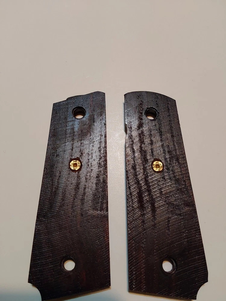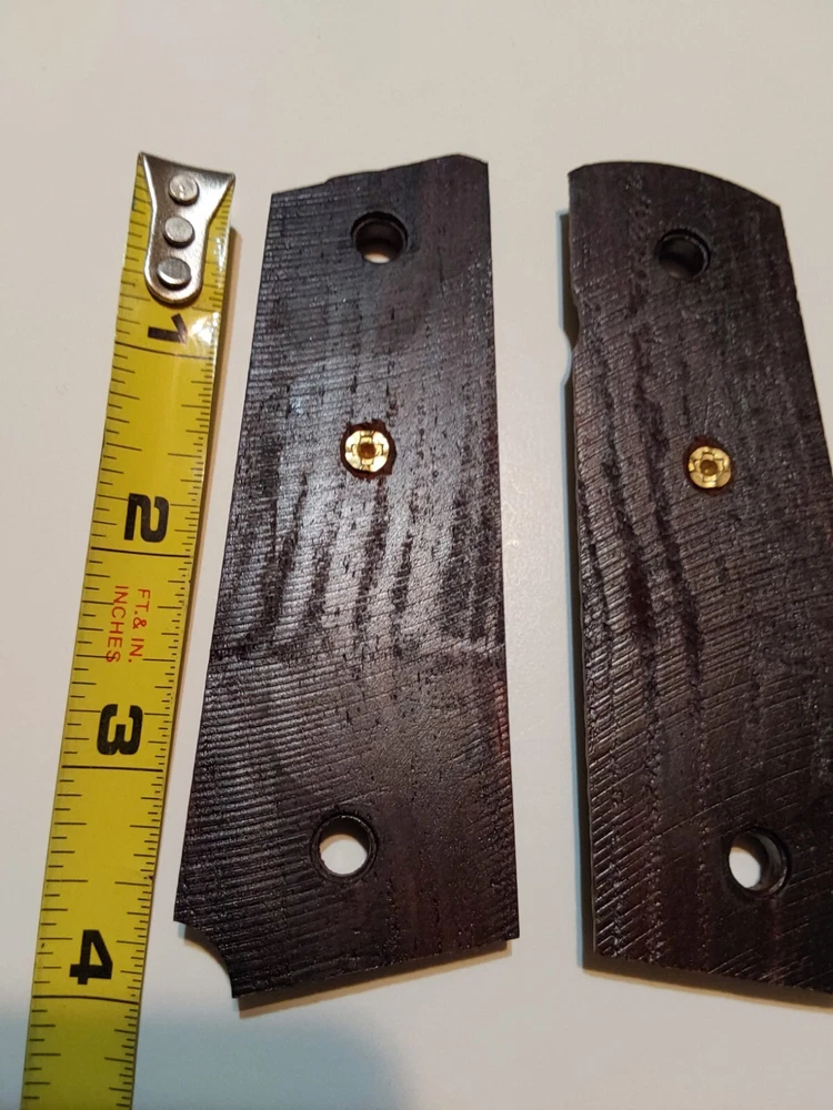 COLT FACTORY 1911 WOOD GRIPS IN EXCELLENT CONDITION, I BELIEVE THEY CAME OF A 1990 SERIES 80 GOLD CUP PISTOL, BECAUSE THEY WERE IN THE BOX WHICH I HAVE LISTED ALSO. SHIPPED USPS GROUND ADVANTAGE IN CARDBOARD BOX