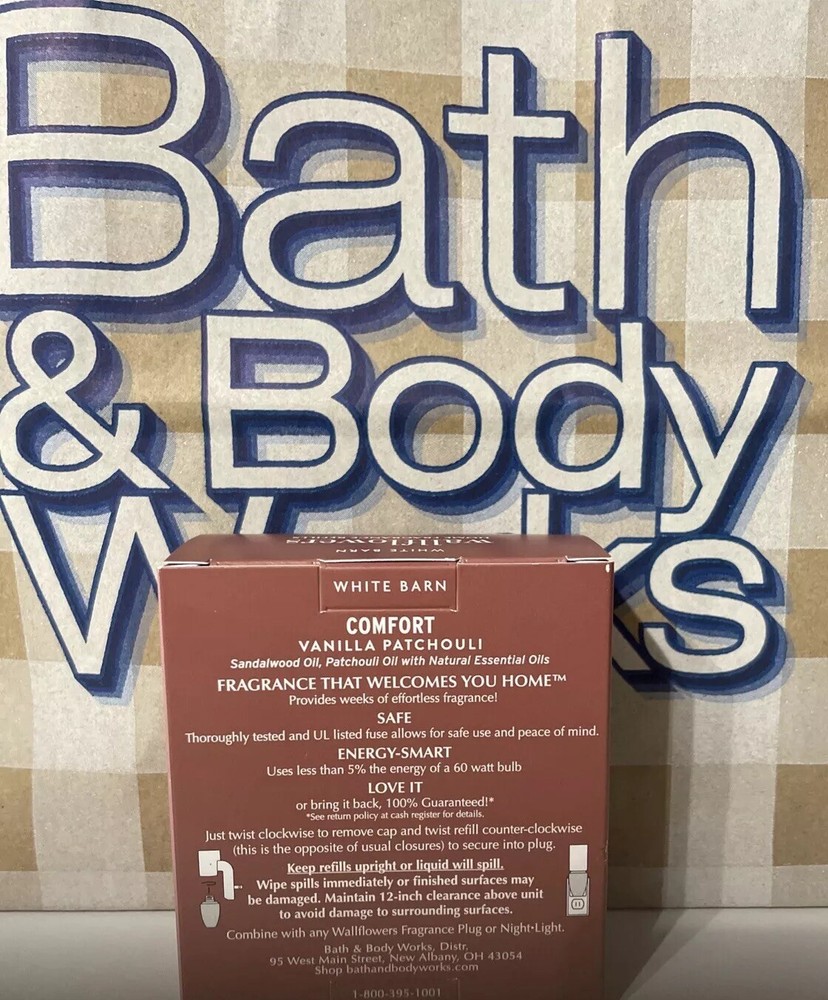 The COMFORT “Vanilla Patchouli" Wallflower Refills from Bath & Body Works come in a pack of 2 and are designed to be used with a wall plug-in power source. The refill oils are scented with a blend of sandalwood and patchouli, acting as a deodorizer and odor eliminator for any room in your home. Made of glass, these refills are crafted in the United States and offer a comforting fragrance that creates a warm and inviting atmosphere. SHIPS FREE!!
