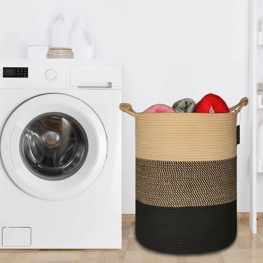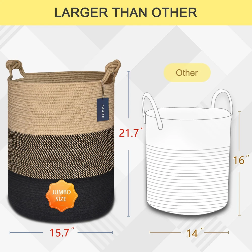 【100% Cotton Rope】Healthy material and chemical-free woven basket, safe for kids and pets. 【Soft and Sturdy】Strong and reliable high storage basket, stand up on its own, no collision scratches, perfect to accommodate baby's clothes and other toys in nursery. 【Large Size】15.7" x 21.7", Tall blanket basket which is perfect for throw pillows, blankets, toys, clothing, Comforter or Cushions. Whether it is helping your child develop clean living habits, or as a decorative basket for your friends. With the appearances and practicality, we believe COMSE cotton storage basket is perfect as a gift for Birthdays, Festival. 【Great Design】Durability handles, easy to move and take away. Neutral color design, healthy materials and multiuse design, will also be a unique home decor addition to your home. Perfect for your laundry room, bedroom, kids room, or living room. 【Notes】Laundry basket fold up during transported, it will return to its best shape if filling it with towels or blankets. Fast remove the creases by ironing it. We only offer high quality products so we are sure you will be satisfied with our cotton rope basket. If you have any dissatisfaction, please contact us and We will provide you with a satisfactory solution.